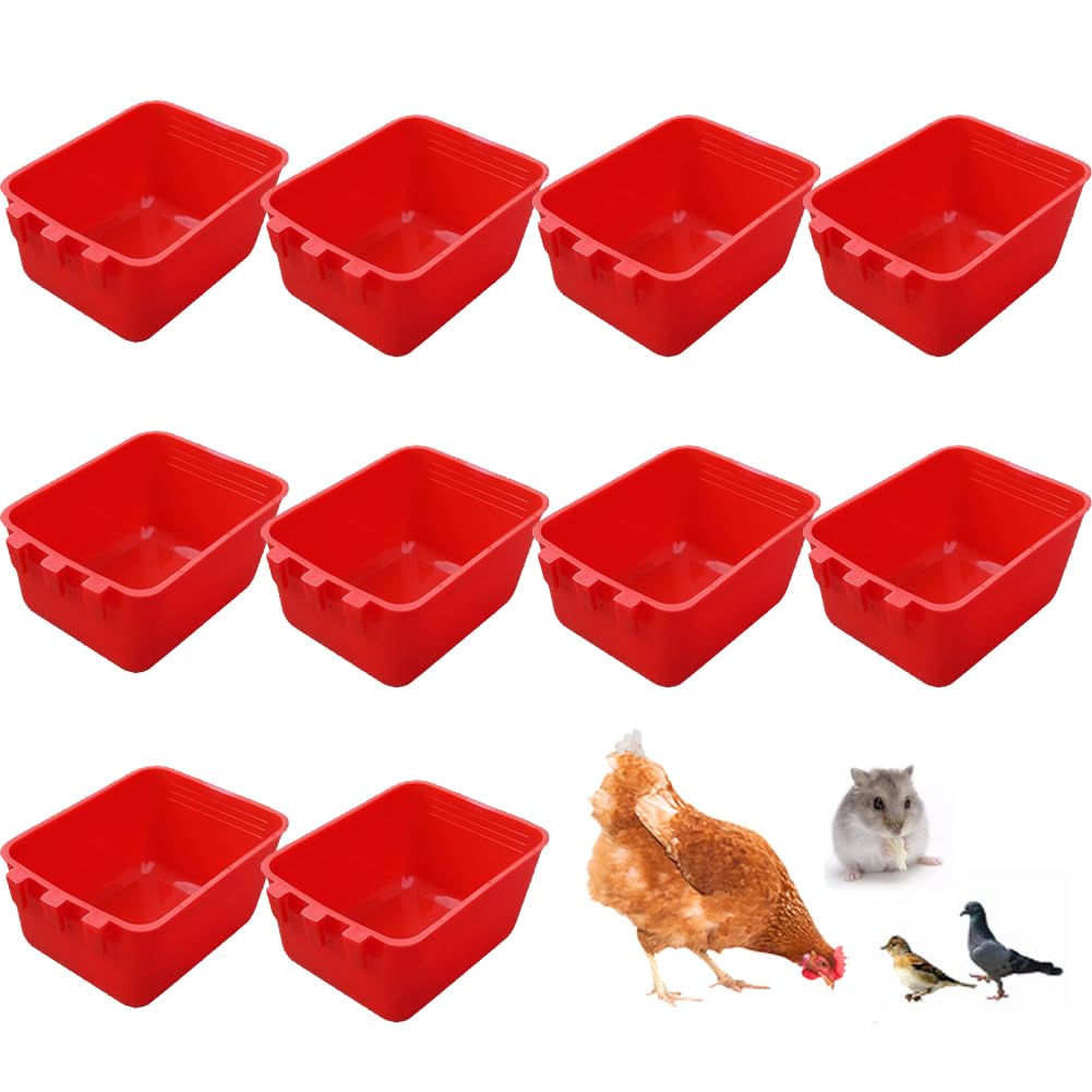 SIZE AND QUANTITY: Cage Cups Size: length: 12.5cm / 4.92inch; width: 9.5cm/3.73inch; capacity: 16oz; package includes 10 square birdie water cups.