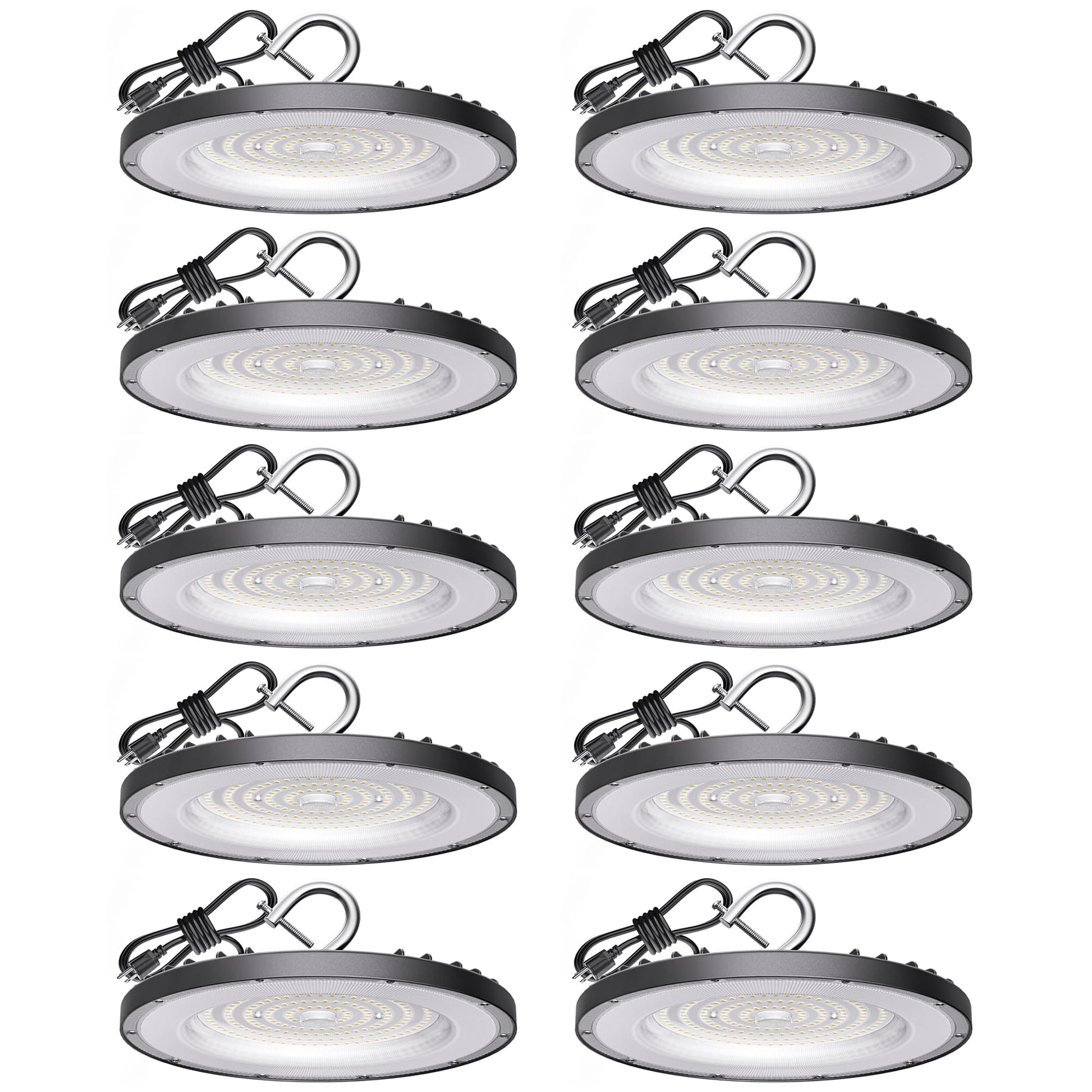 10 Pack UFO LED High Bay Light 200W, 30000 LM, 5000K Daylight, Commercial High Bay LED Shop Lights Fixture with 5' Cable US Hook for Warehouse Workshop Factory Barn Lighting