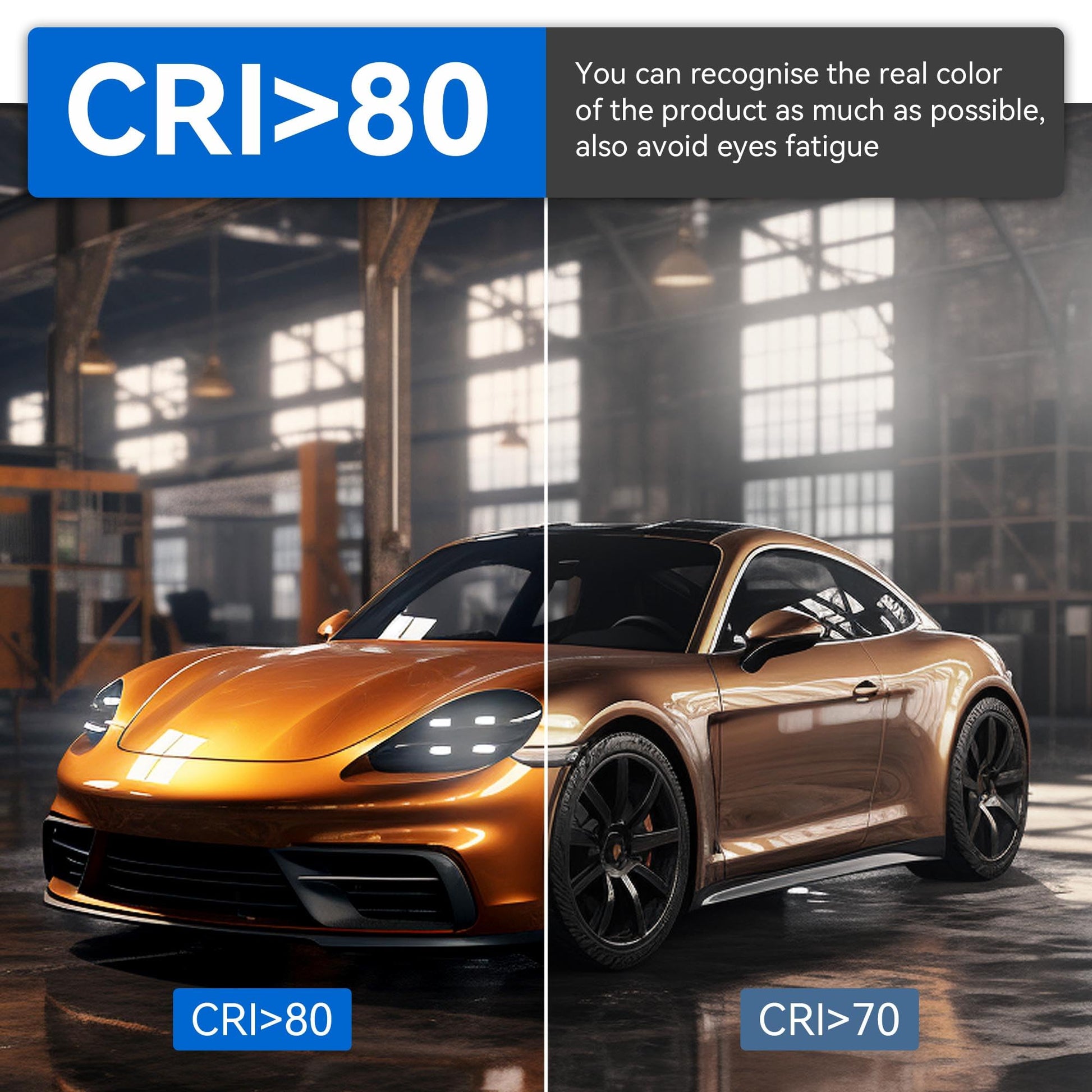 Eyes Friendly: 5000k color temprature is closed to natural light, makes you feel as in the day, and CRI>80, you can see the real item color as much as possible, it is glare and flicker free, not spots, you will feel relax under this light