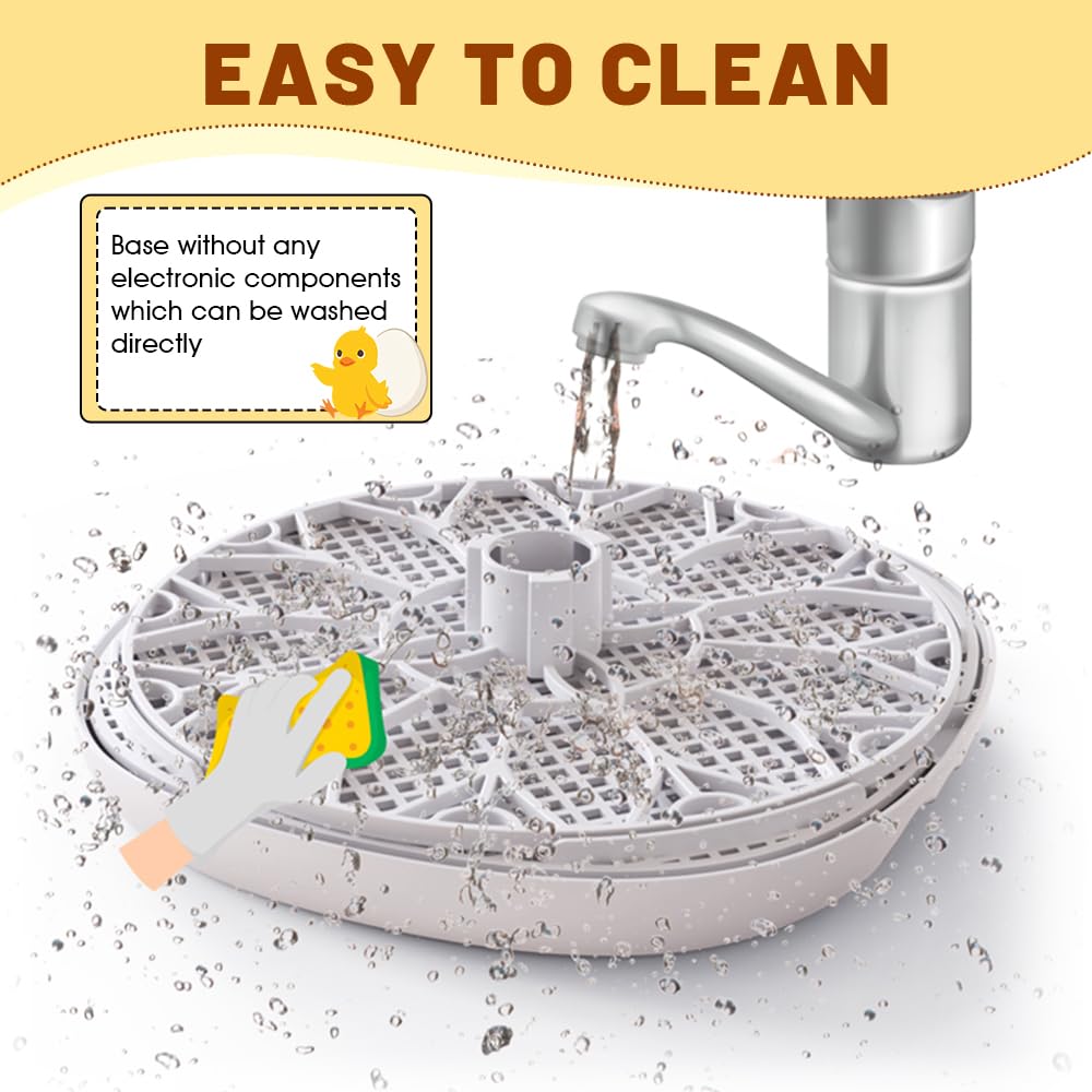 【High-Quality Detachable Design】 Made of durable PET material, this egg incubator withstands temperature extremes. The detachable design with removable trays makes cleaning simple - just remove trays and wash. Easily wipe the cover and circuit components. This incubator for chicken eggs is easy to assemble and perfect for hatching various eggs, including poultry, duck, goose, pigeon, and quail eggs. A practical choice among incubators for hatching eggs.