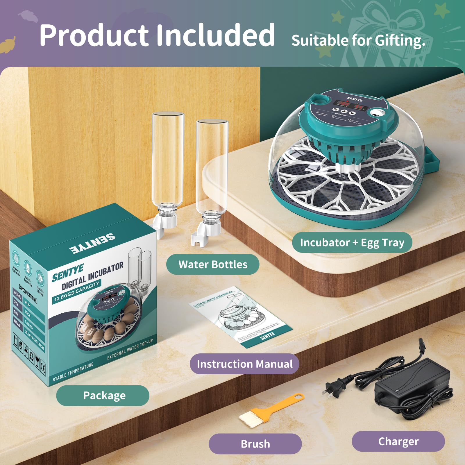EGG INCUBATOR - Our versatile egg incubator, designed for hatching various types of eggs including chicken, quail, duck, goose, and bird eggs, offers a seamless hatching experience. It can accommodate 12 chicken eggs or 27 quail eggs.