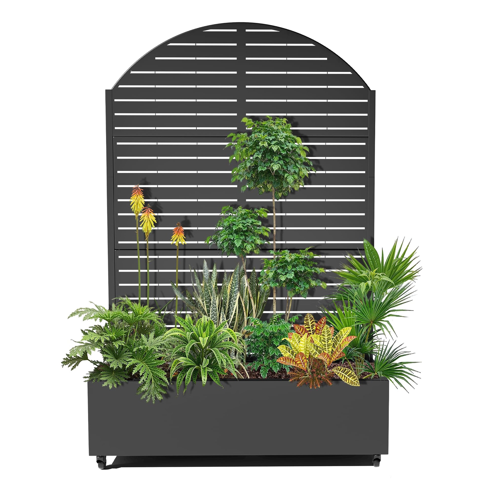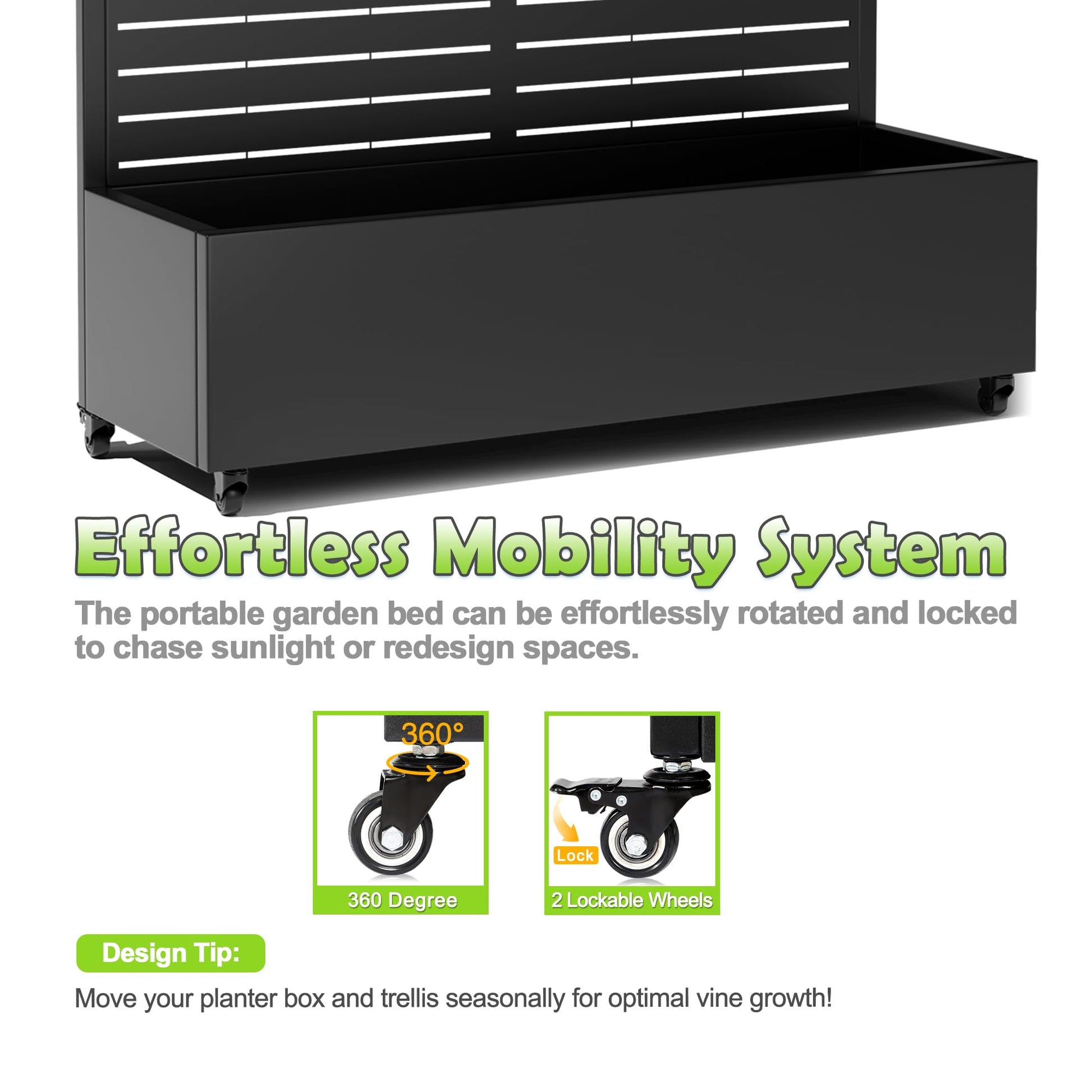 PORTABLE GARDEN BED: Four sturdy wheels make repositioning this raised garden bed with trellis effortless, allowing you to move it with the sun. The integrated lock keeps privacy planter stable in place, perfect for flexible patio privacy layouts.