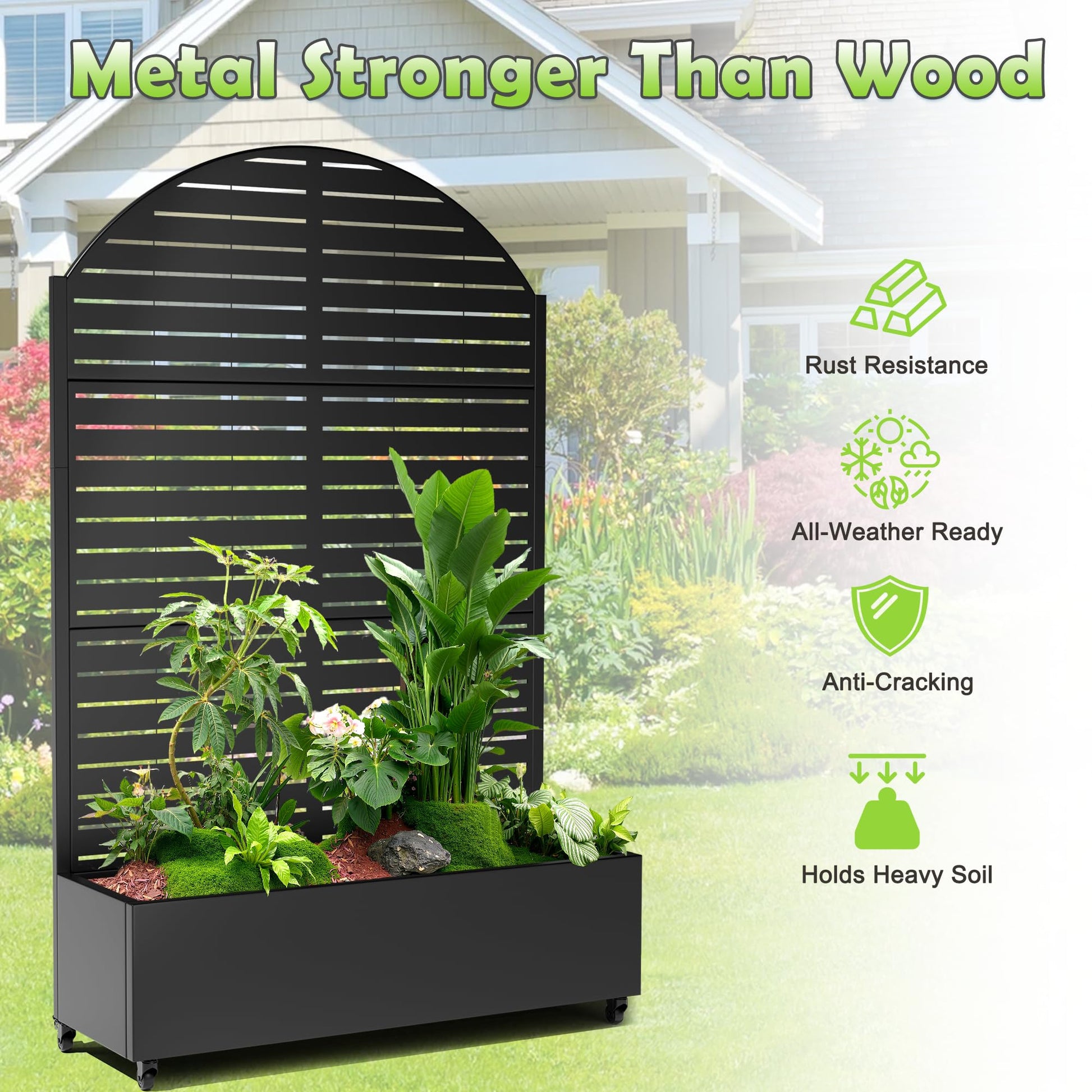 15.7"×70.9"×47.2" Metal Raised Garden Bed with Trellis and Wheels - Tall Trellis Planter Box for Climbing Plants, Vegetables & Vines - Outdoor Privacy Planters for Patio (Black-Louvered)