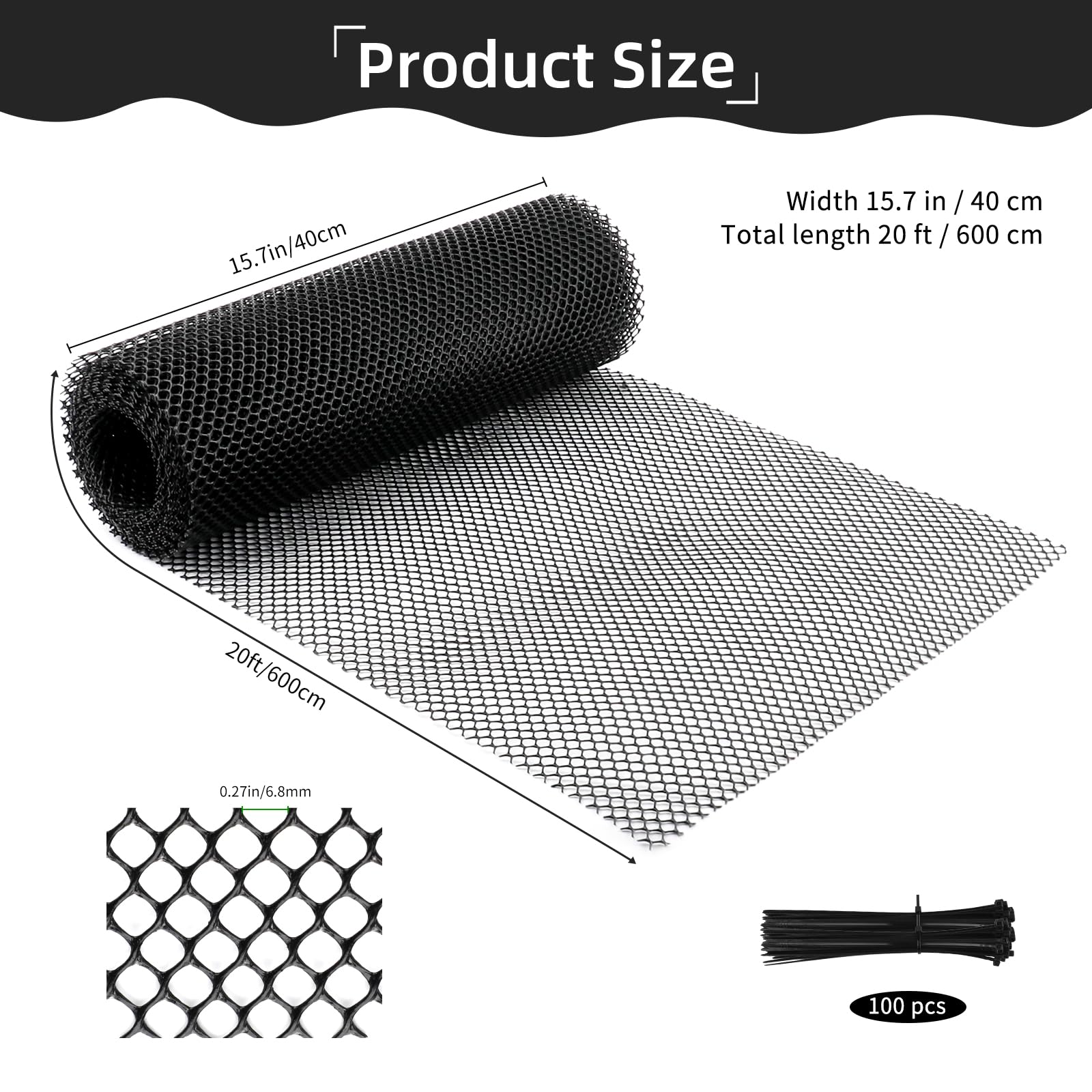 Package Includes:You will receive 1 pcs black 15.7inch x 20 ft tree protection plastic fence and 100 pcs zip ties, this is a sheet of plastic mesh that you can protect your plants.