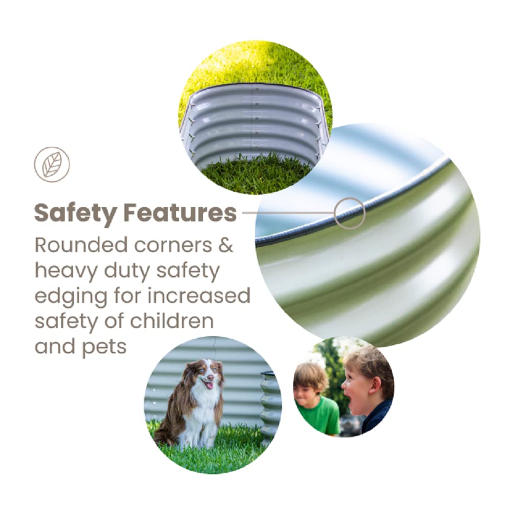 • For garden bed, we have combined a Zinc, Magnesium, and Aluminum coated steel with our award-winning and USDA approved AkzoNobel paint to develop a new material which we call VZ 2.0. The first material of its kind is 100% safe, eco friendly, with a long 20+ year life. VZ 2.0’s exceptional performance has been verified at the Texas A&M National Corrosion & Materials Reliability Lab