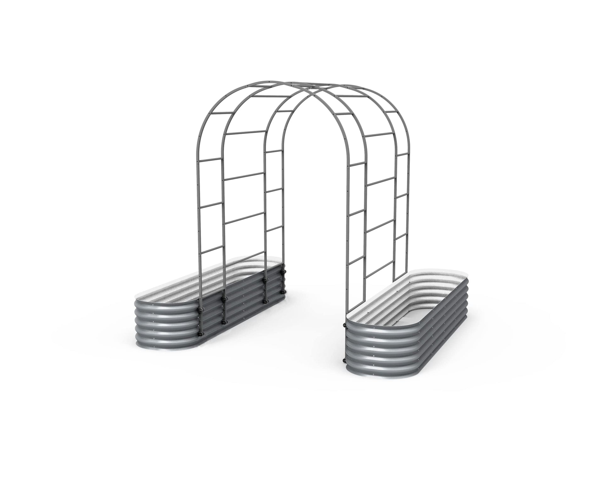 • Our 6.0' Long Arched Trellis is designed to perfectly fit our 9 in 1 raised beds in the configuration of 2ft x 8ft, extending your growing space.