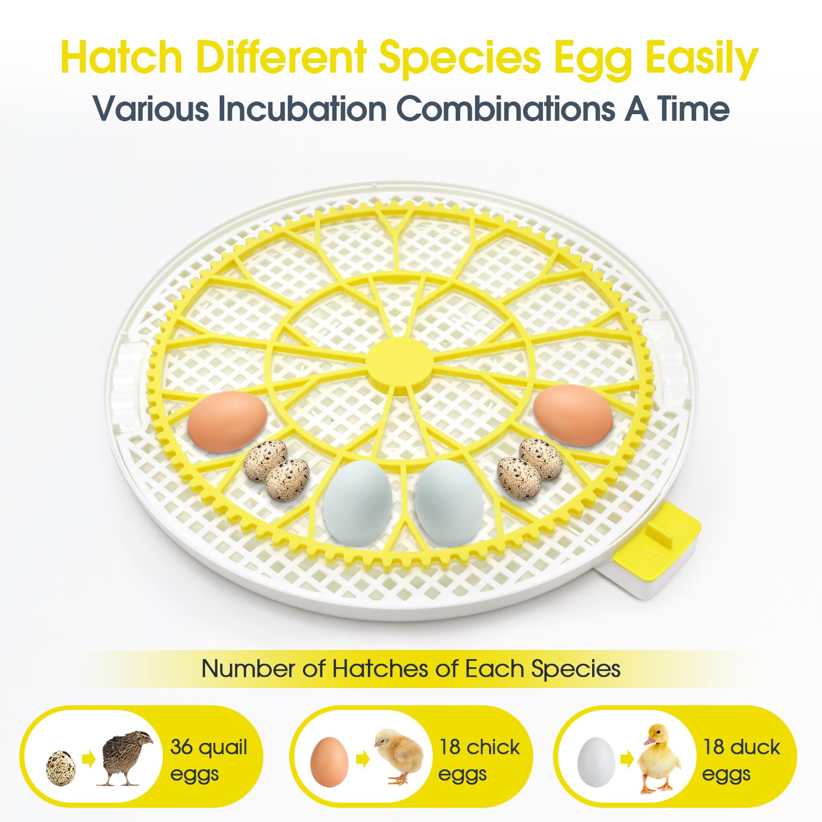 SUITABLE FOR CHICKENS, DUCKS AND QUAILS: Sailnovo egg incubator can accommodate up to chicken eggs, duck eggs and more quail eggs. You can adjust the distance between the rollers in the chicken incubators according to the size of the hatching eggs, and easily hatch the poultry eggs you want.