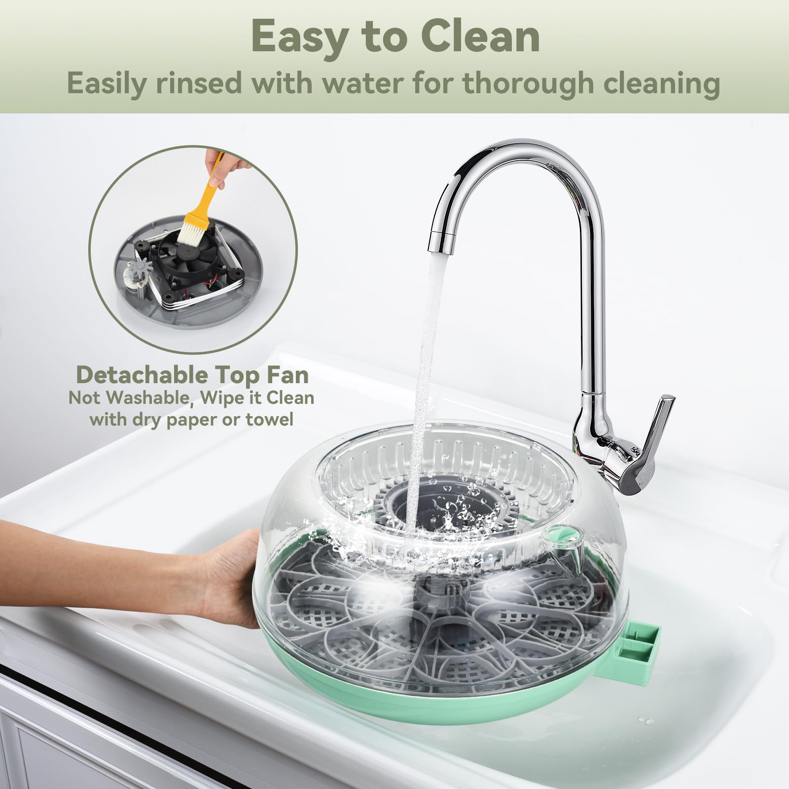 【Easy-Clean Design】The egg incubator with humidity control has a removable and waterproof base. Simply wipe the reptile egg incubator’s cover for hassle-free maintenance.