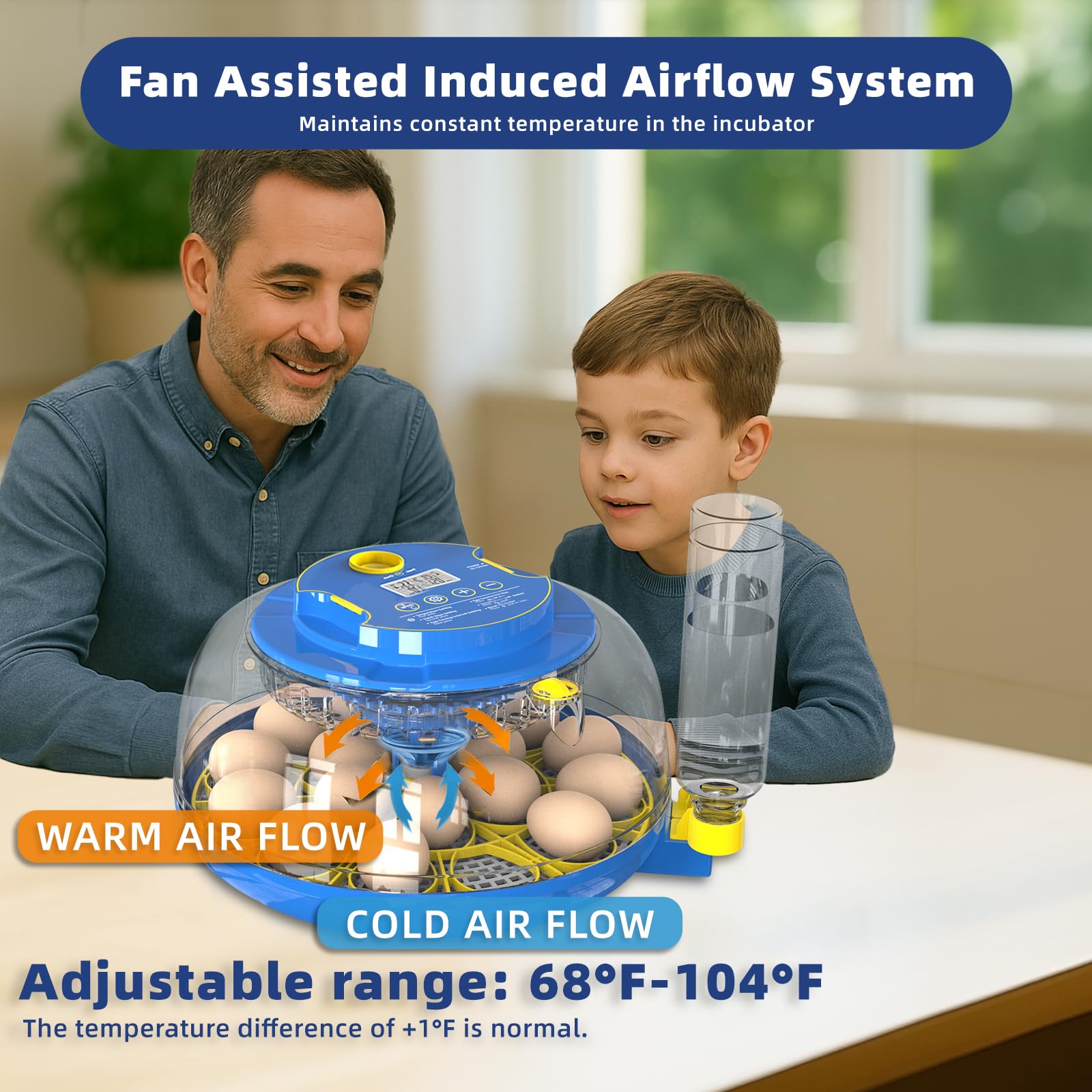 【Simple to Use and Clean】With a detachable fan and washable base, this incubator is beginner-friendly. Easy setup and clear instructions make it a reliable choice for anyone raising poultry at home or in class.