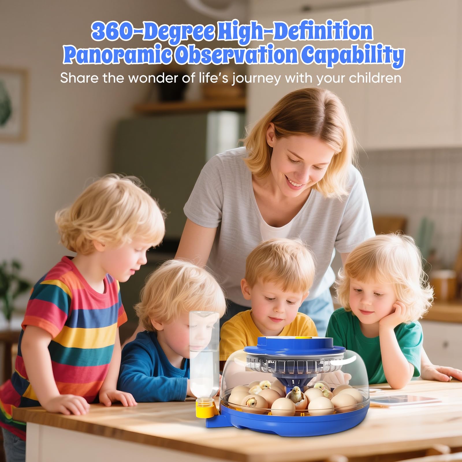 【360° Transparent Design & Built-In Candler】 Watch the magic unfold! The incubators for hatching eggs have a clear 360° lid and a Egg candler.The transparent lid allows for non-intrusive 360° observation of the hatching process, and the built-in candling light lets you track embryo development and remove unfertilized or abnormal eggs.Optimize resource allocation within the incubator.