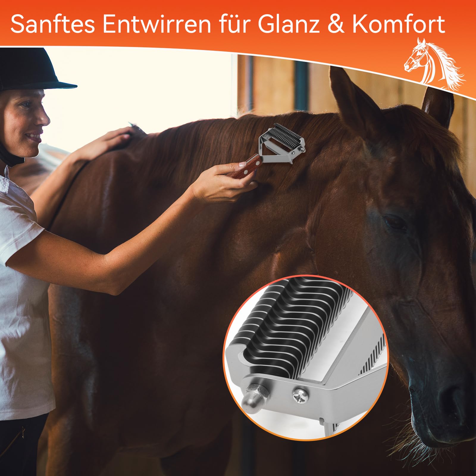2 in 1 Horse Grooming Comb Mane Deshedding Tool Goats Cow Brush, Horse Brush Set with Leather Show Comb Holder,20 Stainless Blades and Wood Handle,Livestock,Pet