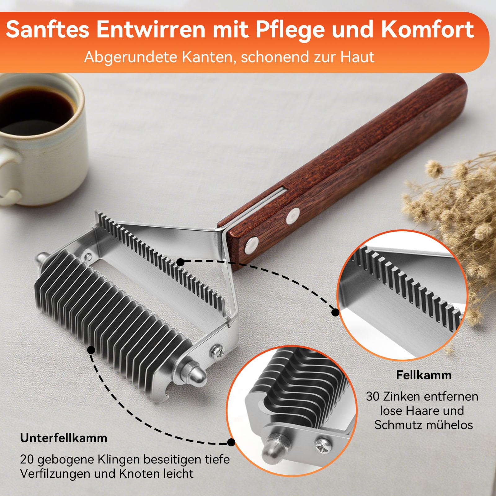 Built to Last: Features a durable stainless steel frame and a comfortable hardwood handle (6.9" long, 2.5" wide). The ergonomic wood handle ensures a secure grip and tidy grooming.