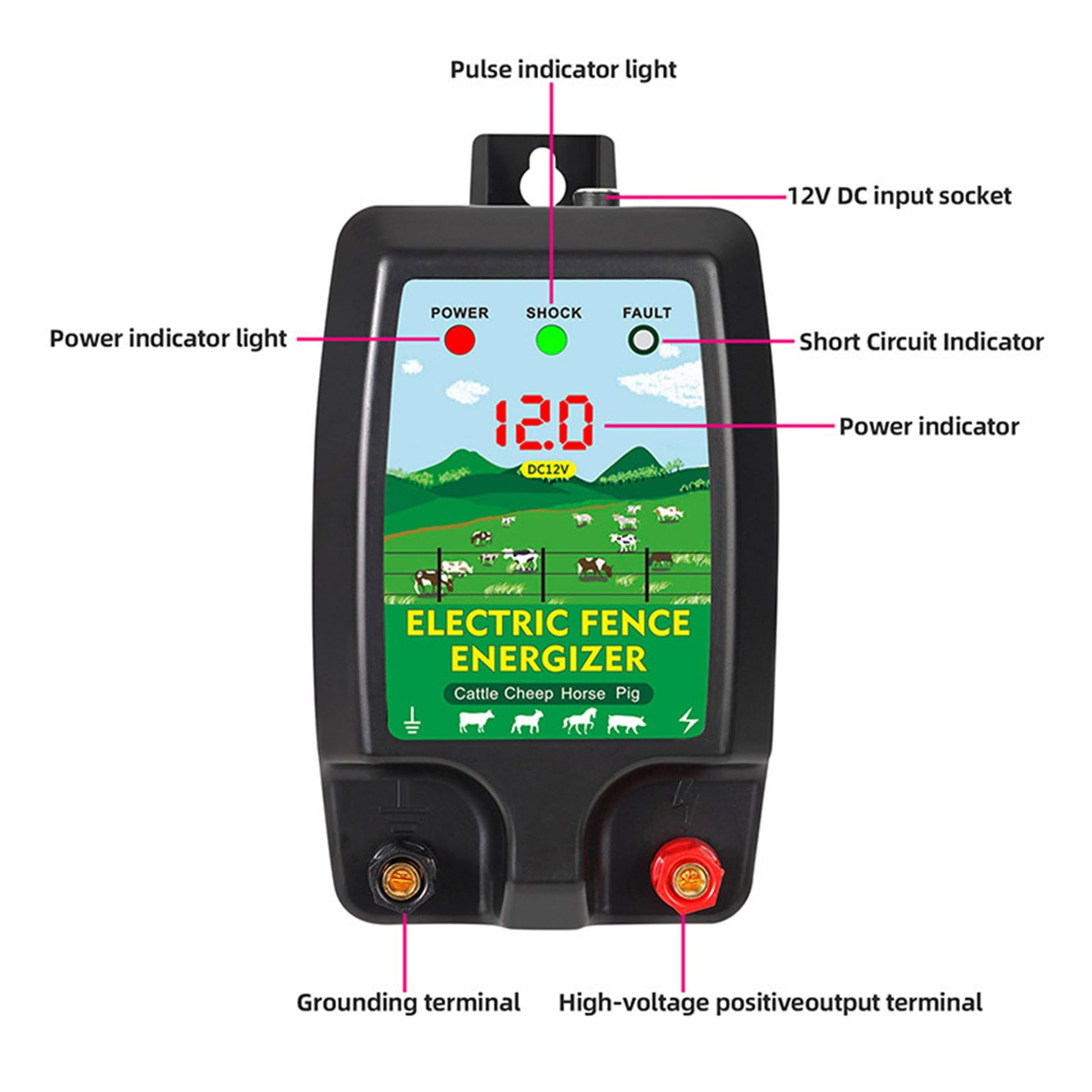 12KV Output: Electric Fence Energizer can extend to 6.2 miles and cover a large area, ideal for large scale livestock farms, pastures, gardens or properties
