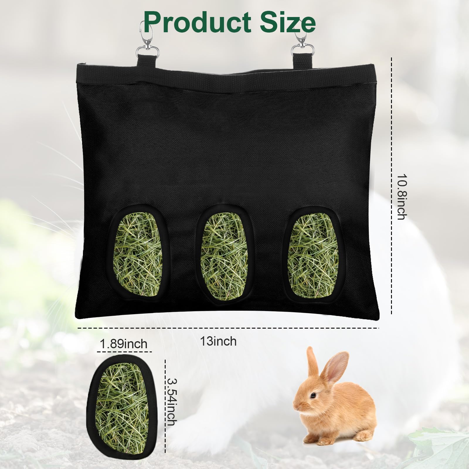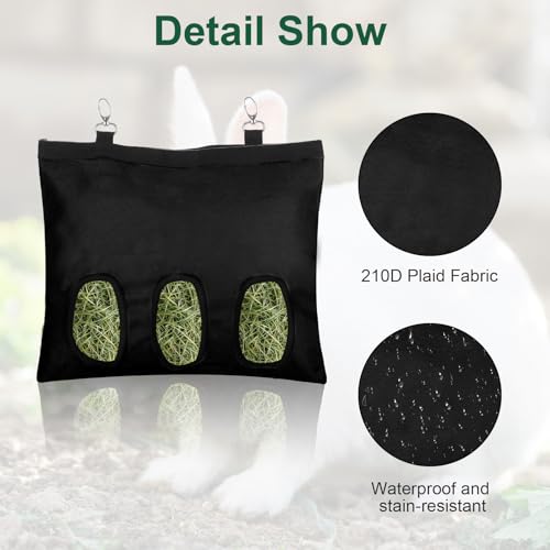 【High Quality Material】 Our rabbit hay holder are made of 210D plaid fabric, which is strong, durable, wear-resistant and tear-resistant, effectively resisting rabbit gnawing and scratching, guinea pig hay bags can be used for a long time
