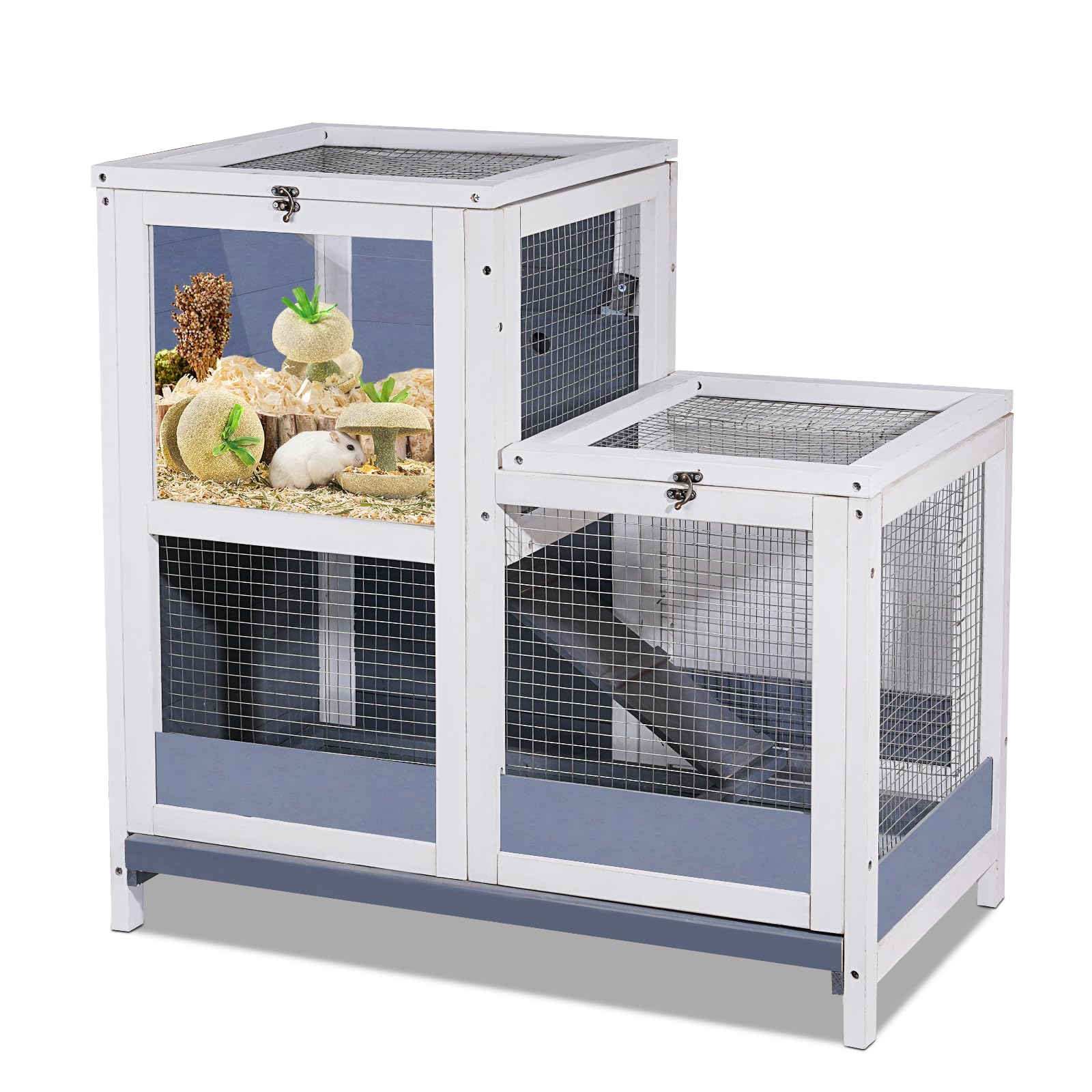 【Spacious Space of Guinea Pig Cages】This 2-tier hamster cage features a retreat area (upper floor) and a playing ground (lower floor), which offers roomy space for your critters to play, run or catch a quick nap, Providing more room for them to play with no weight limit.