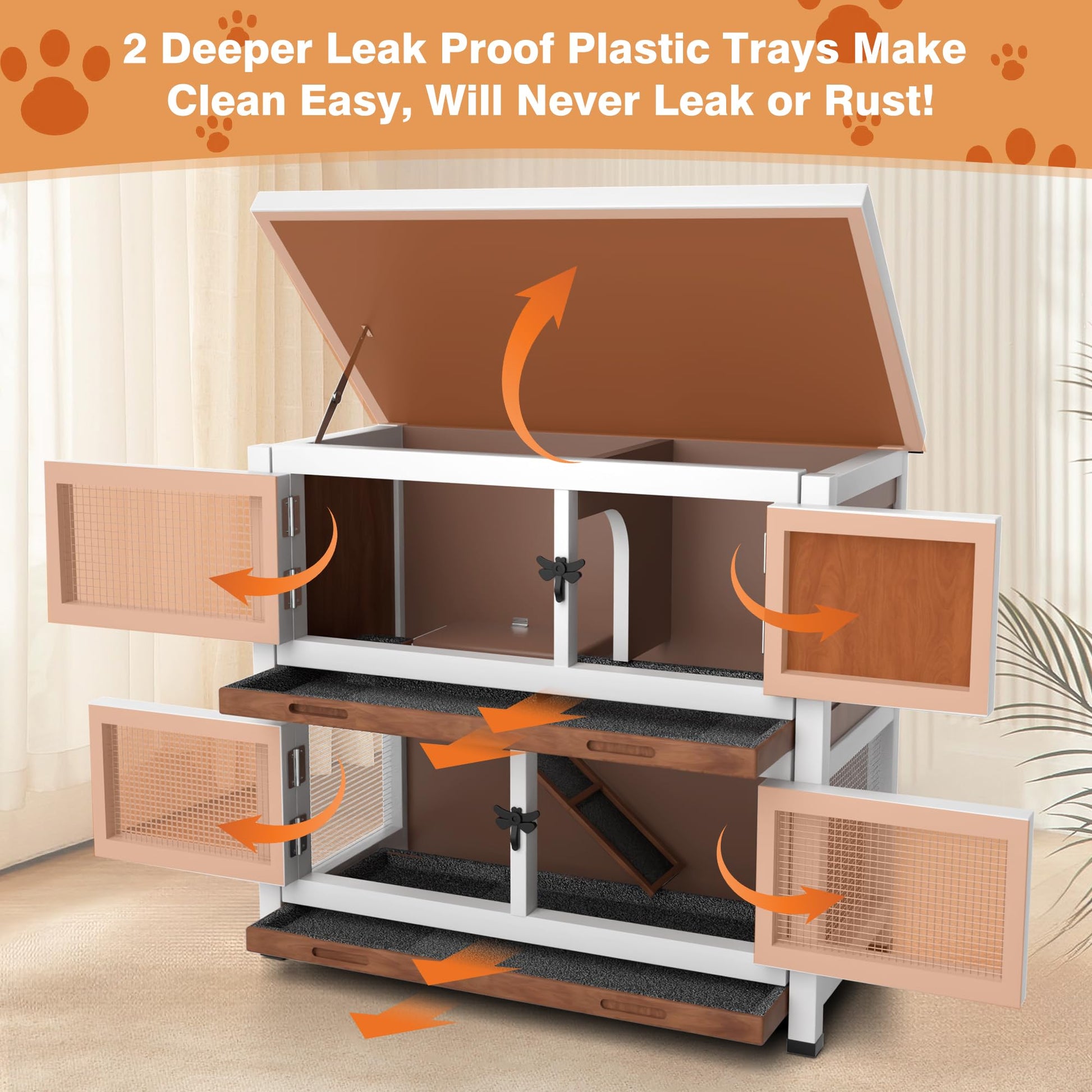 Easy Cleaning Design: Features two quality plastic pull-out trays that are leak-proof and rust-resistant, making cleaning hassle-free and maintaining a sanitary environment for your pets.