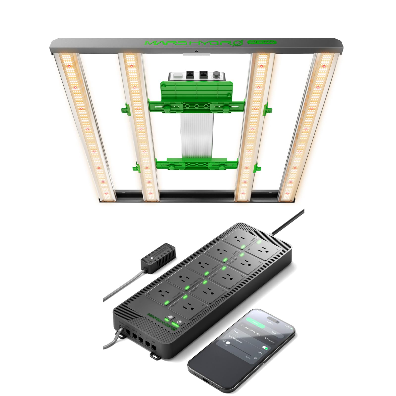 2025 MARS HYDRO FC-E3000 LED Grow Light 300Watt and iHub-Pro Smart 10AC Power Strip Kit 10-Outlet All-in-One Grow Room Hub
