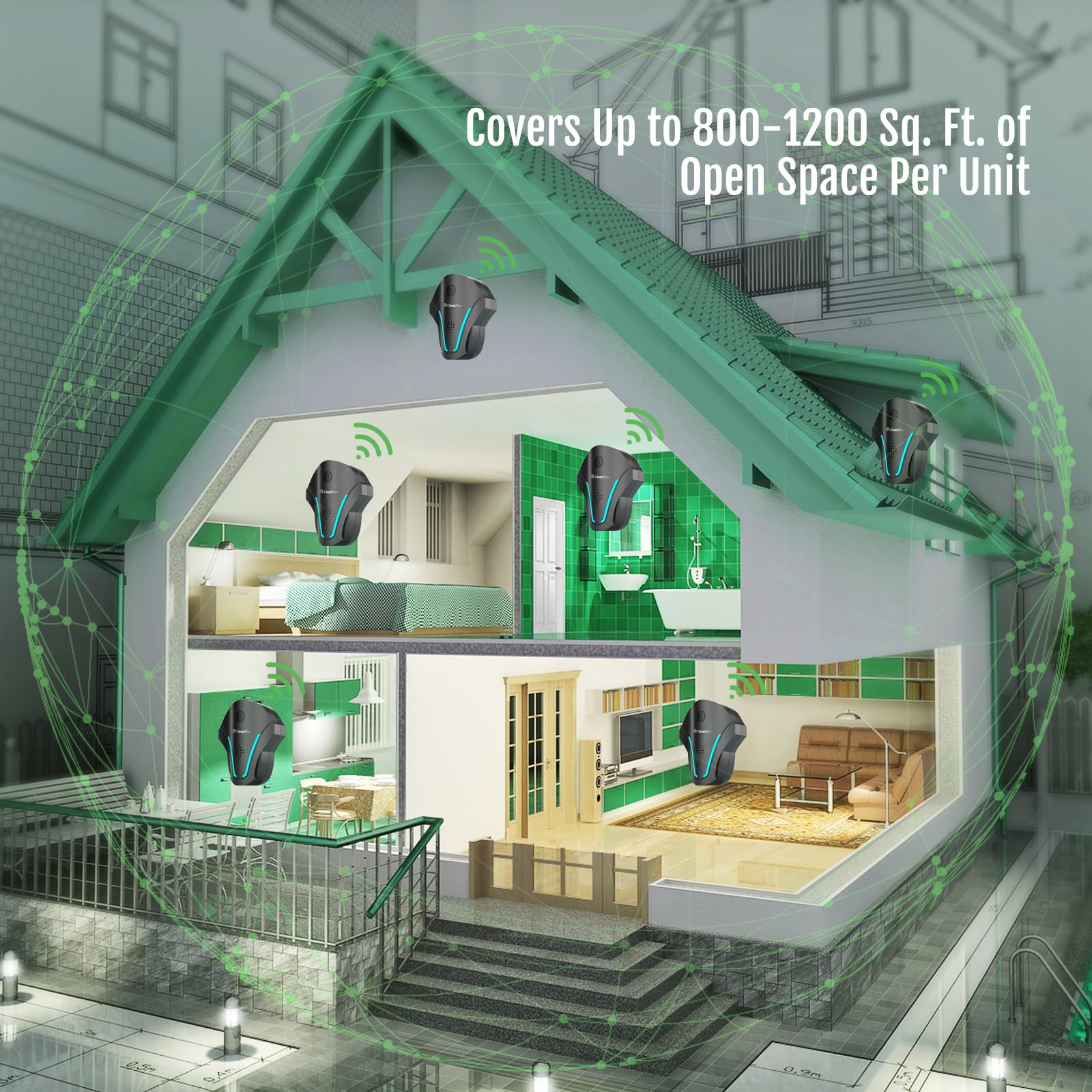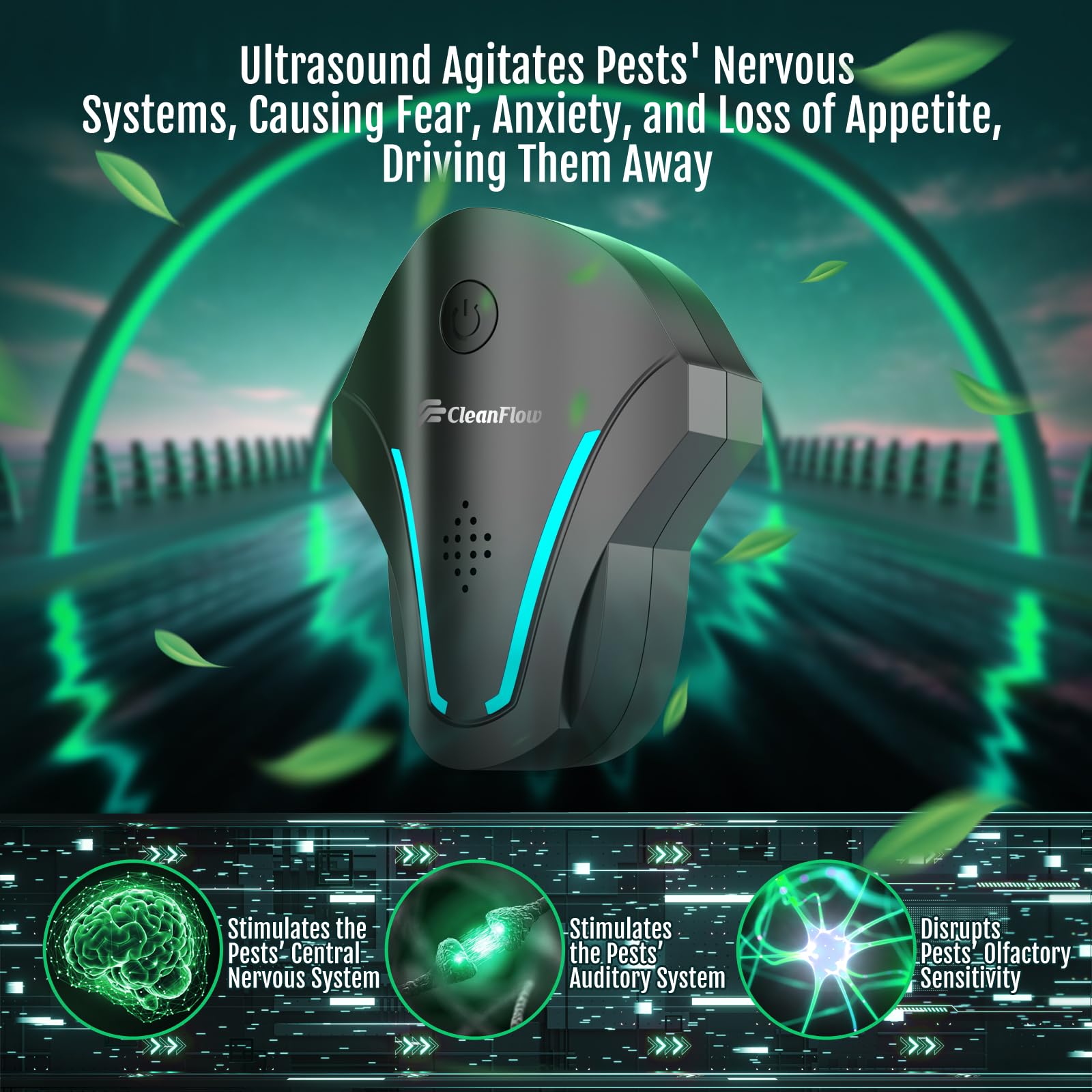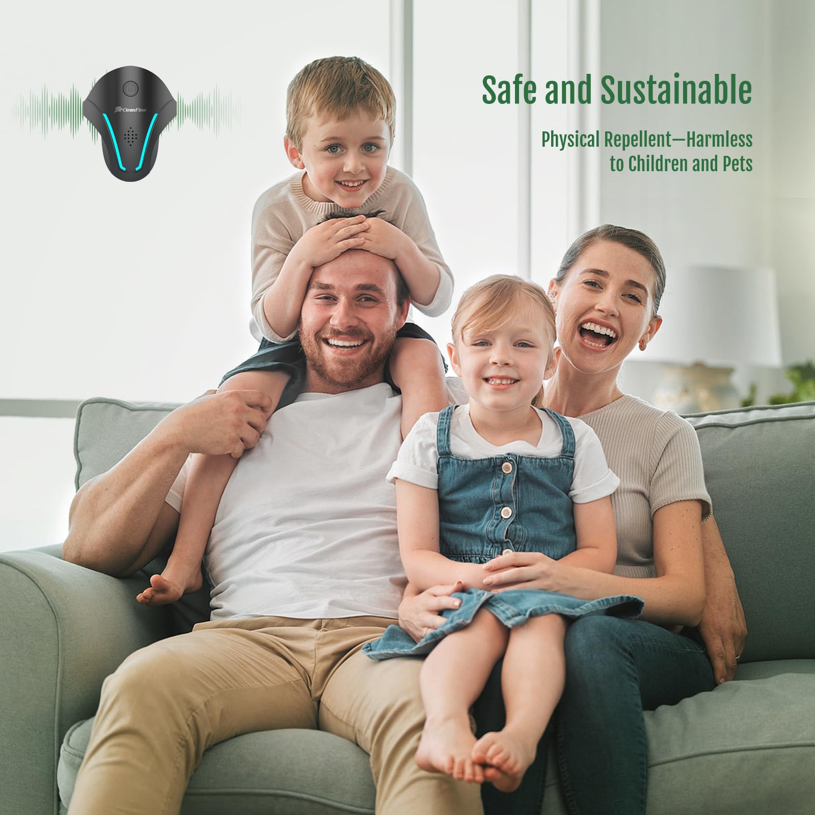 Conscious Solution: Ditch harmful poisons, hazardous chemicals, and traditional traps used in households and pest control. Our ultrasonic technology, inaudible to both humans and pets, offers a sustainable, odorless alternative to harmful pest control method