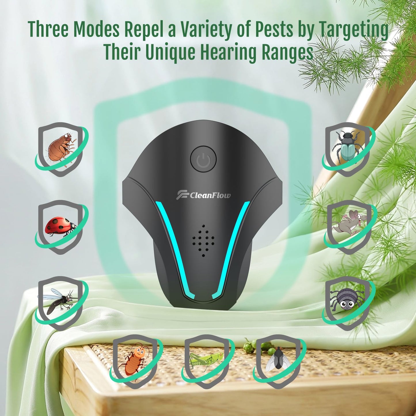 2025 Upgraded Ultrasonic Pest Control Repeller for Rodents and Insects Indoor, Powerful for Roaches, Mice, Bugs, Mosquitoes, Spiders, Ants - 3 Modes, 6 Pack