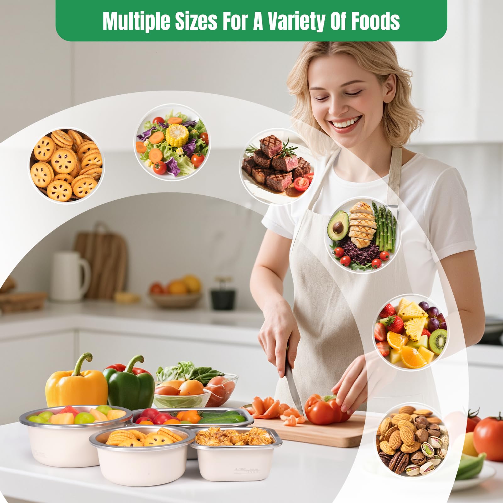 【Various Shapes & Sizes for Flexible Meal Planning】 Choose from square, rectangular, or round metal food containers with lids, with capacities ranging from 14oz to 57oz. Whether you need a snack prep container or a large stainless steel lunch box for adults, we offer options to fit every lifestyle and portion need.
