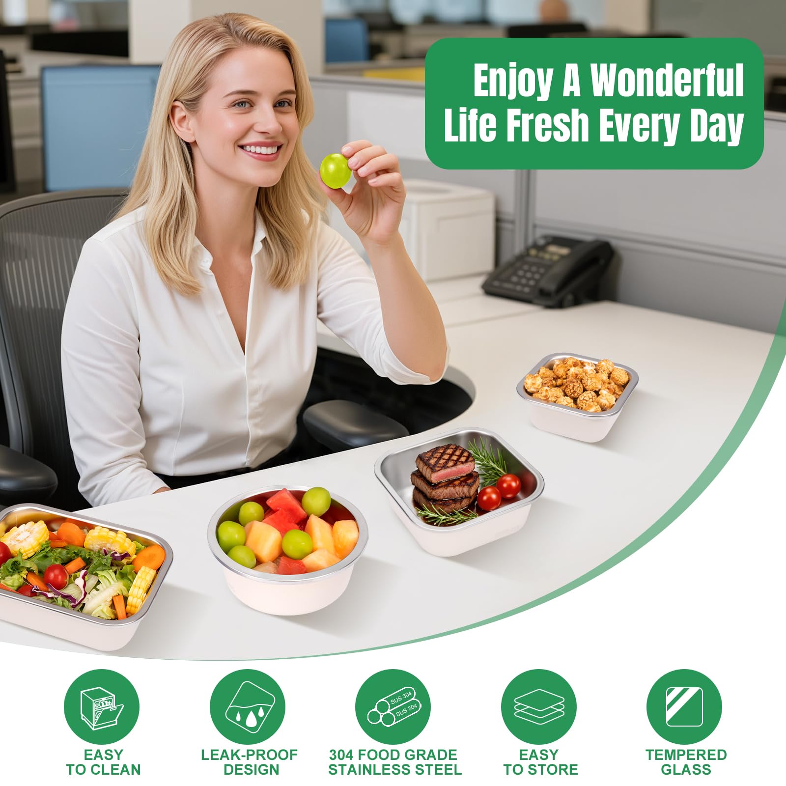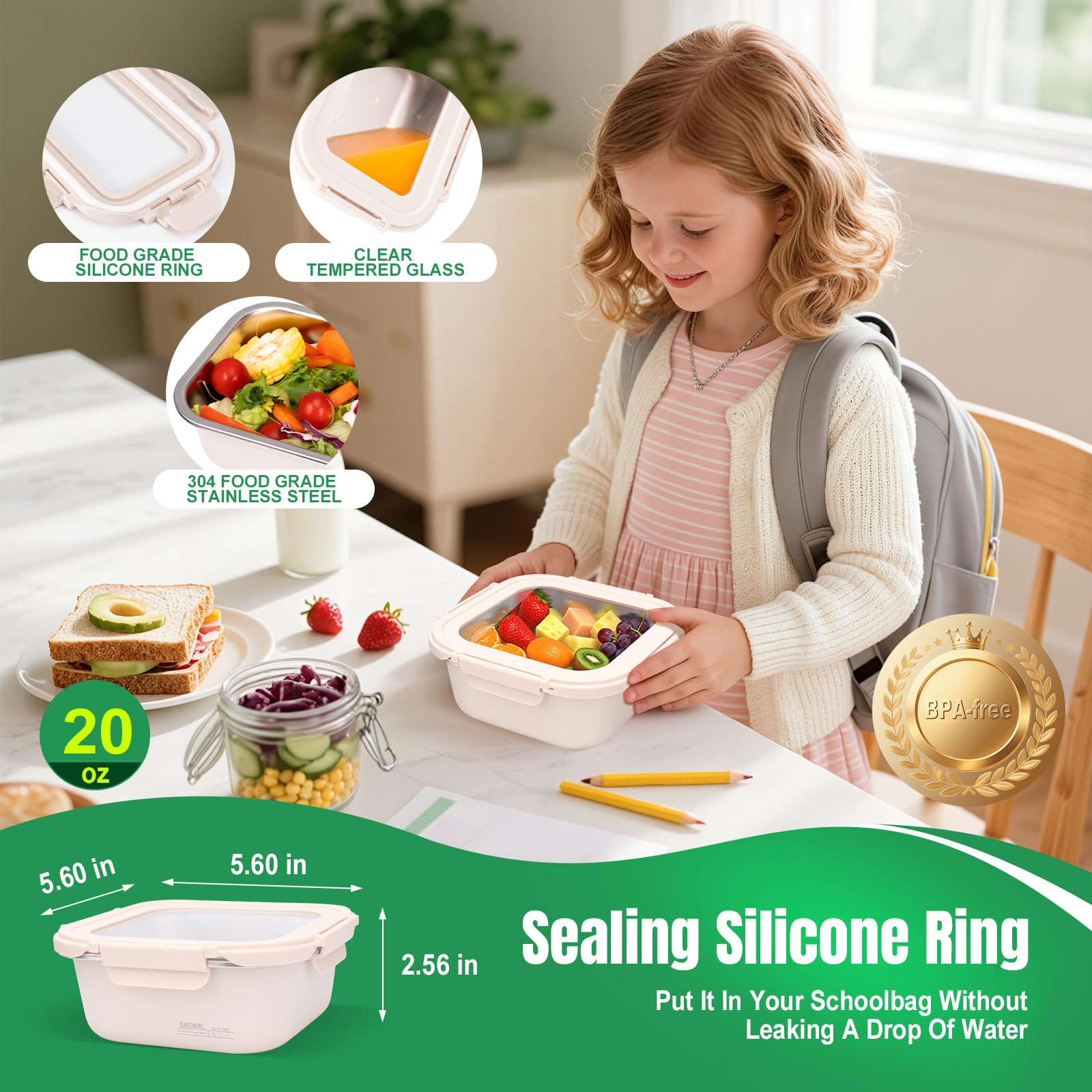 【Leak-Proof Glass Lid with Food-Grade Silicone Seal】 Say goodbye to spills! Our stainless steel containers with lids feature a BPA-free silicone sealing ring and heavy-duty tempered glass top that’s airtight, leakproof, and built to last. Unlike plastic lids, our reinforced glass resists cracking and keeps your meals securely sealed.