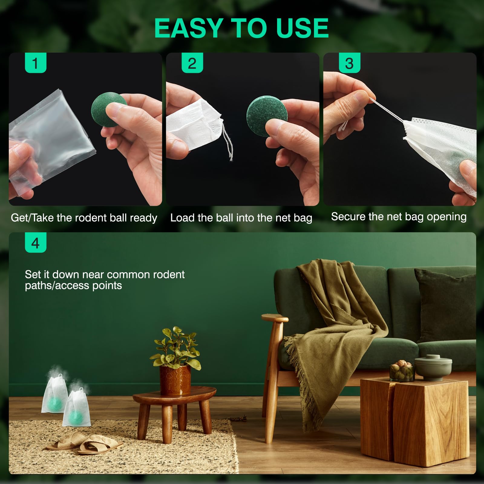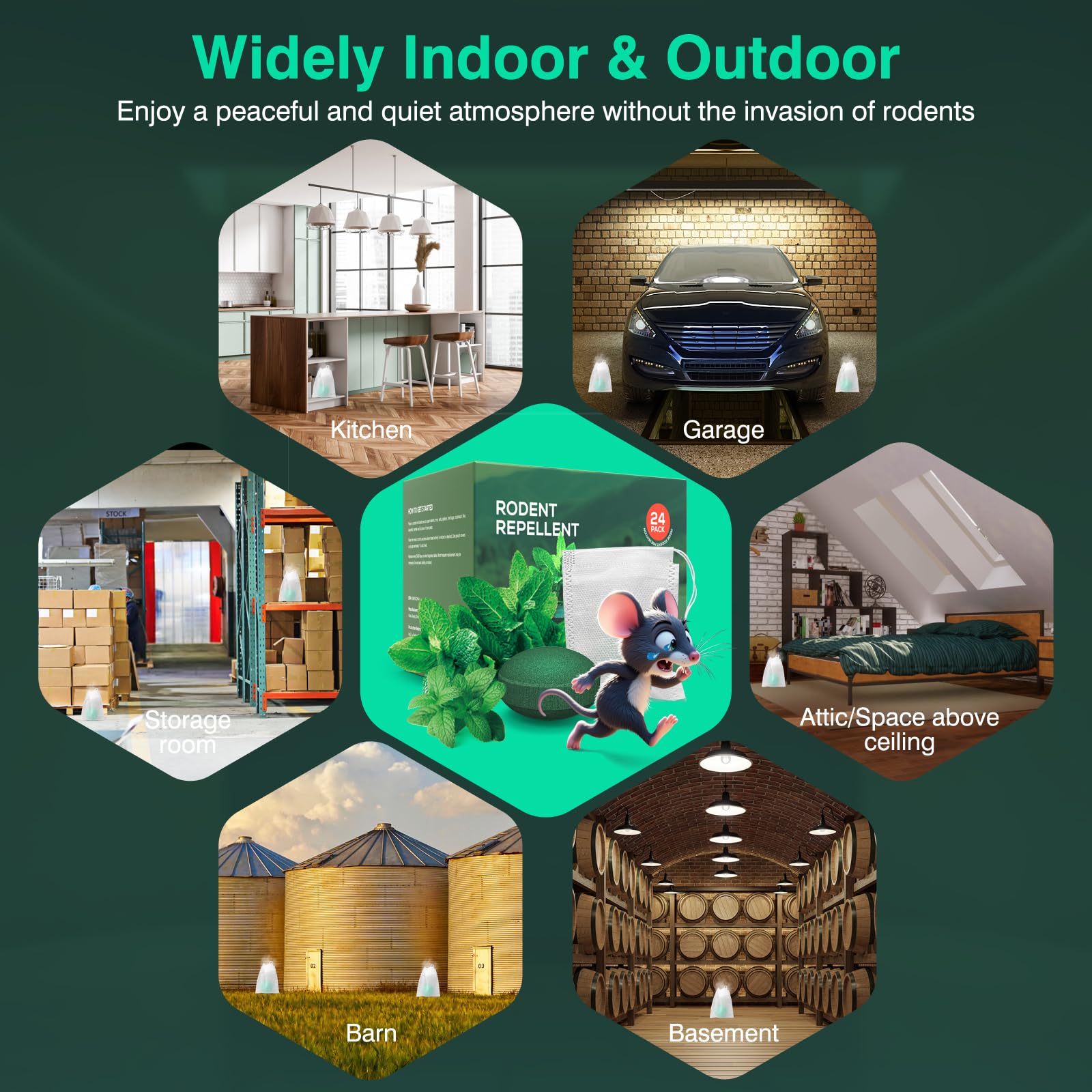 24 Pack Mouse Rodent Repellent, Natural Peppermint Oil, Mice, Rat, Squirrel, Pest Control, Rodent Repellent for Indoor Outdoor Use(Light Green)
