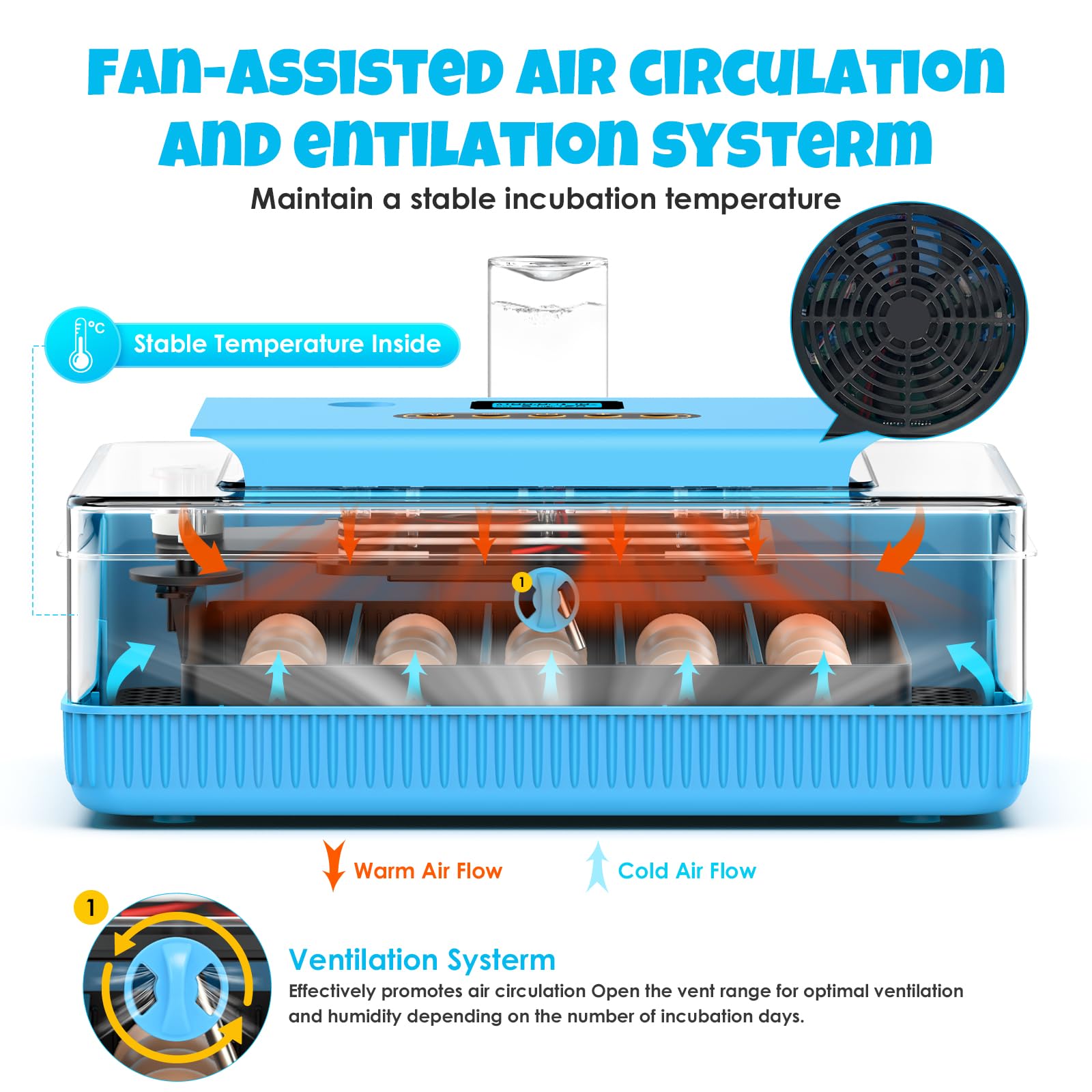 š£Precision Digital Control Panel: Equipped with advanced temperature control technology, our incubator ensures that eggs are maintained at the optimal hatching temperature, significantly increasing hatch rates. Whether you are an experienced hatching professional or a beginner, you can effortlessly enjoy a high-quality hatching experience.incubator for chicken eggs