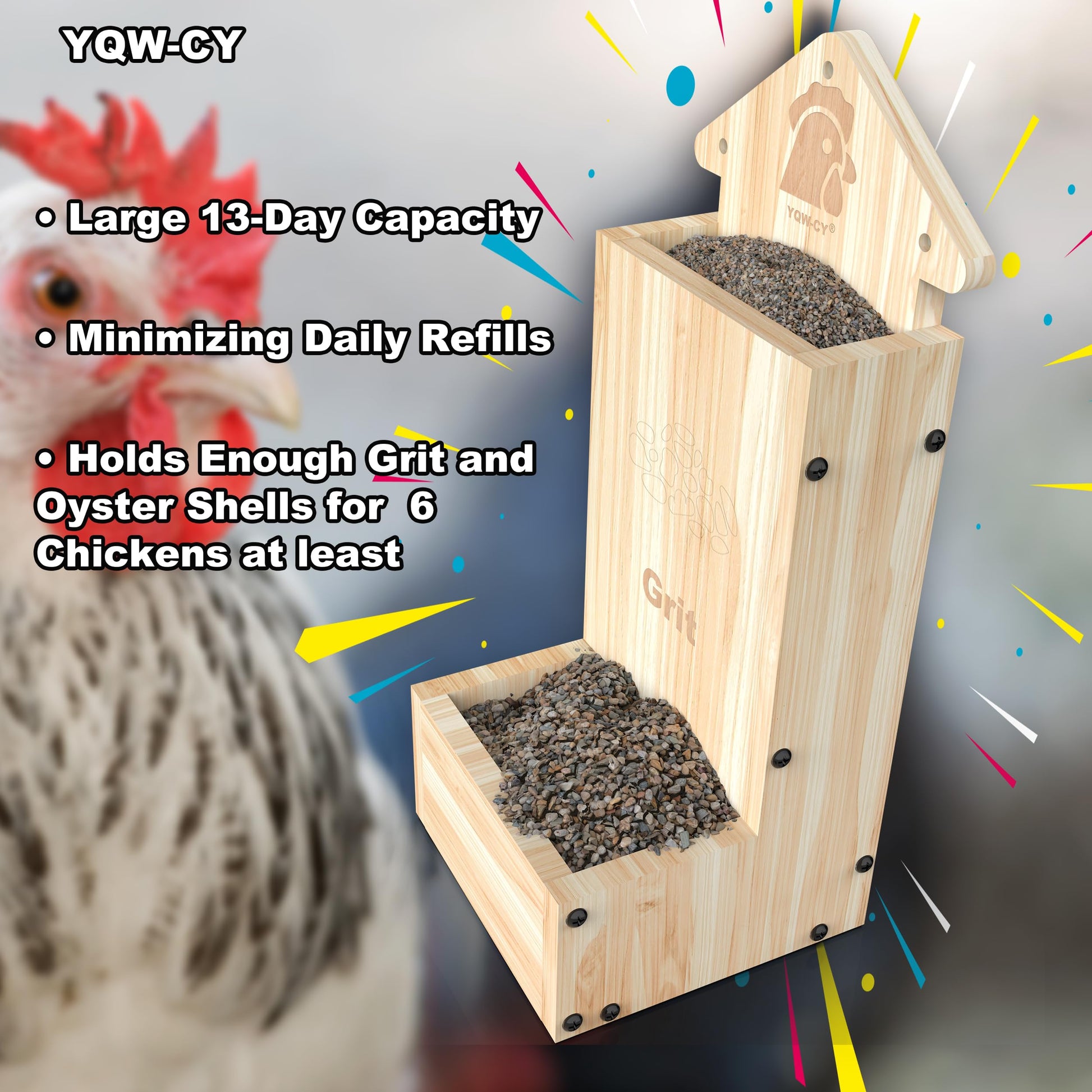 Improves Flock Health & Eggshell Strength: Promotes healthier chickens and higher-quality eggs with its dual-purpose design: the chicken feeder ensures consistent access to oyster shell calcium (for stronger eggshells) and grit (for digestion), while reducing feed waste. Ideal for flocks that lack outdoor foraging opportunities.