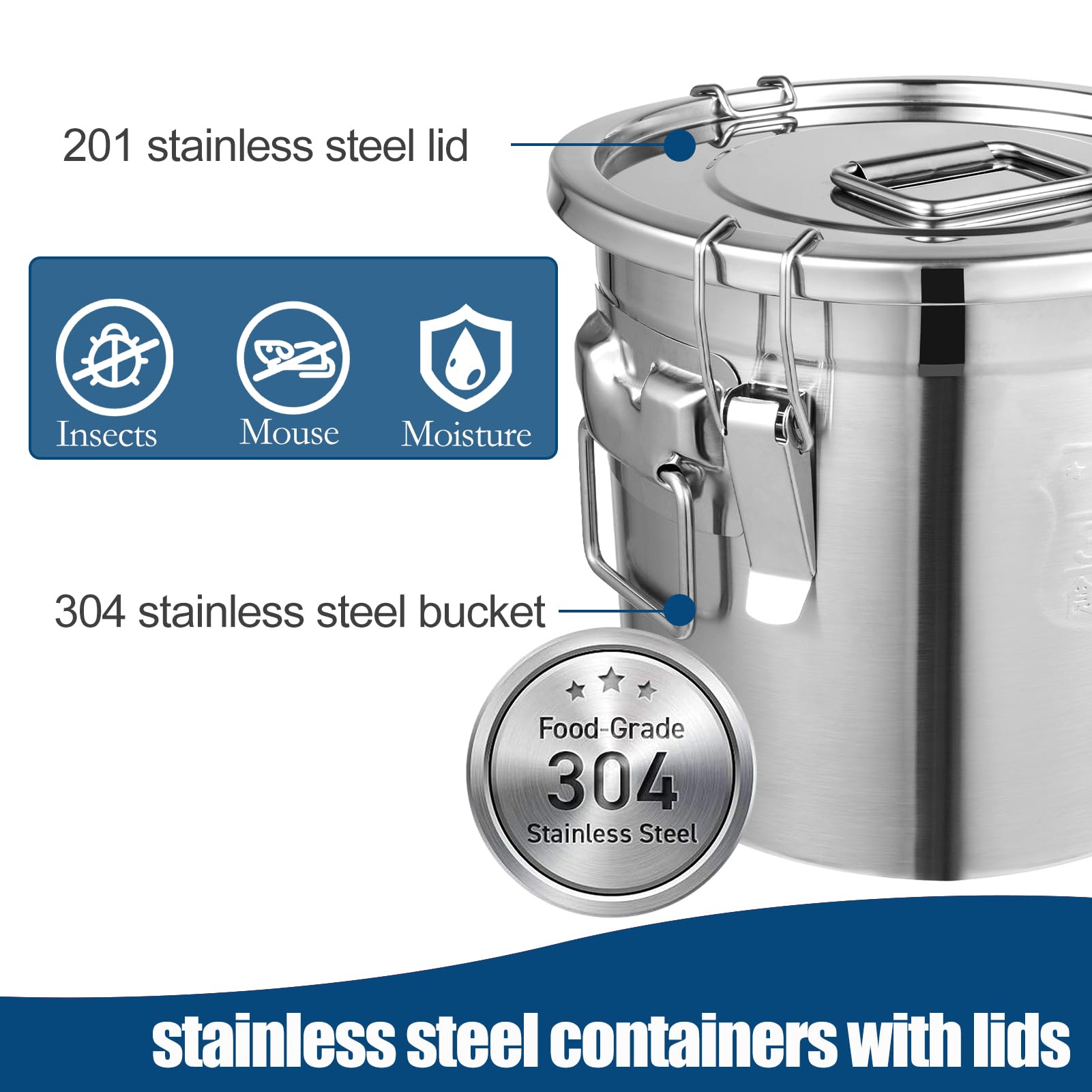 Easy to Use: The metal food containers with lids is very lightweight and easy to open and close. Our stainless steel food storage containers are designed with handles on both sides of the barrel, which are tightly welded to the barrel body for easy movement or pouring of contents anytime, anywhere