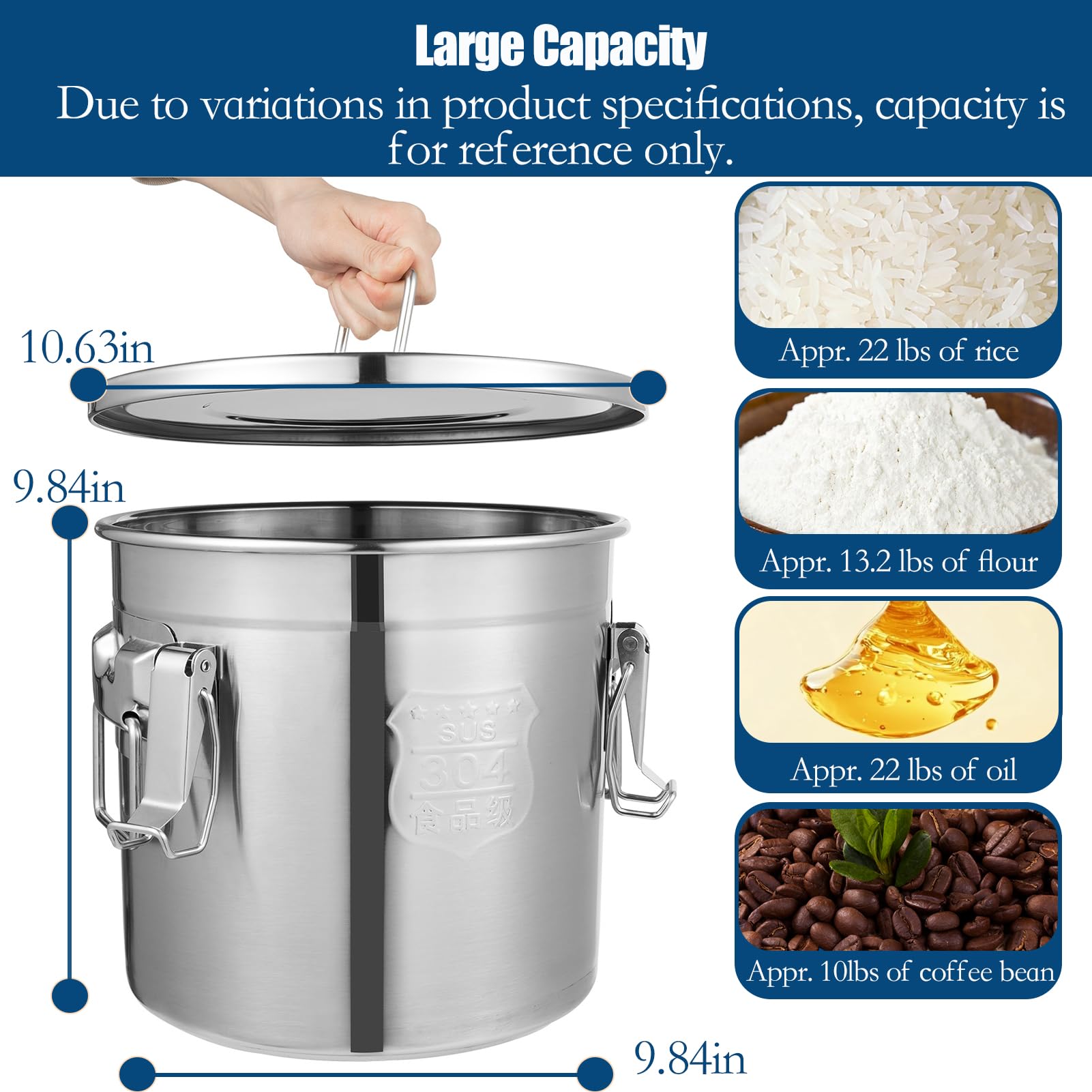 304 Stainless Steel Airtight Canister, 3.17Gal/405oz Airtight Food Storage Container with Lid and Lock Clips, Large Metal Pantry Storage Canister for Coffee Beans, Flour, Tea, Sugar, Cereals