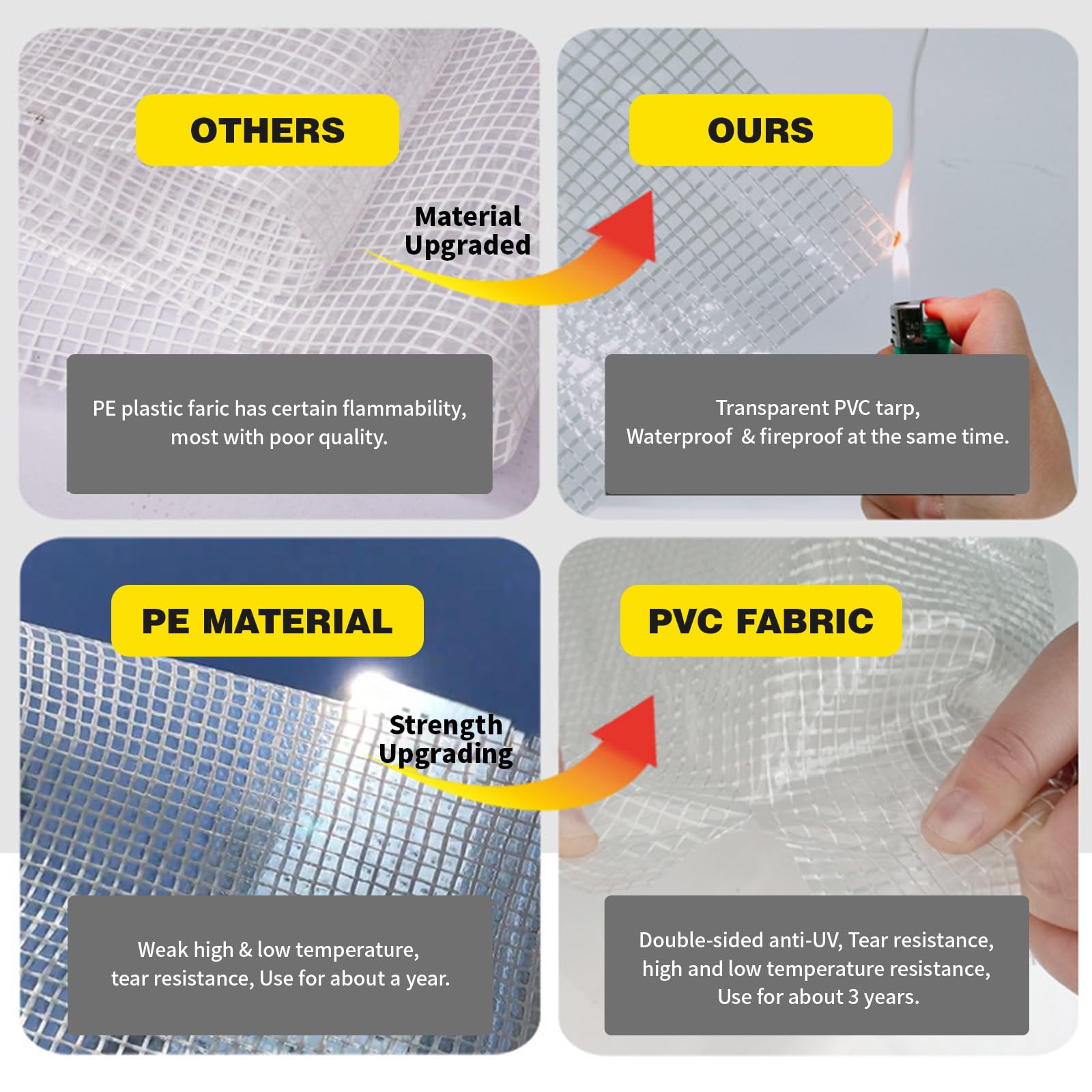 Durable greenhouse covering: There are reinforced strings inside the plastic of all round and the edges are hemmed, making it stronger and able to withstand more intense pulling forces.