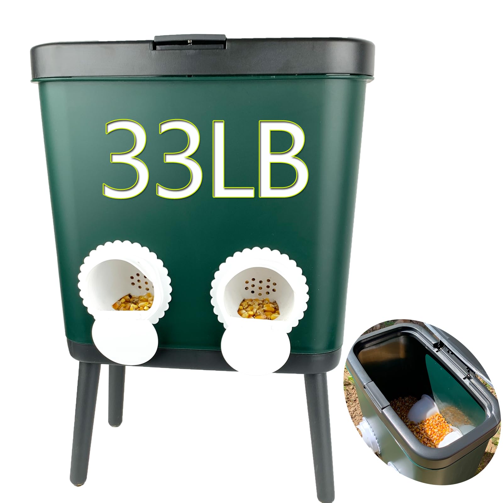 Large Capacity: The auto chicken feeder is 33LB large capacity,which can meet many chickens to eat for a long time.