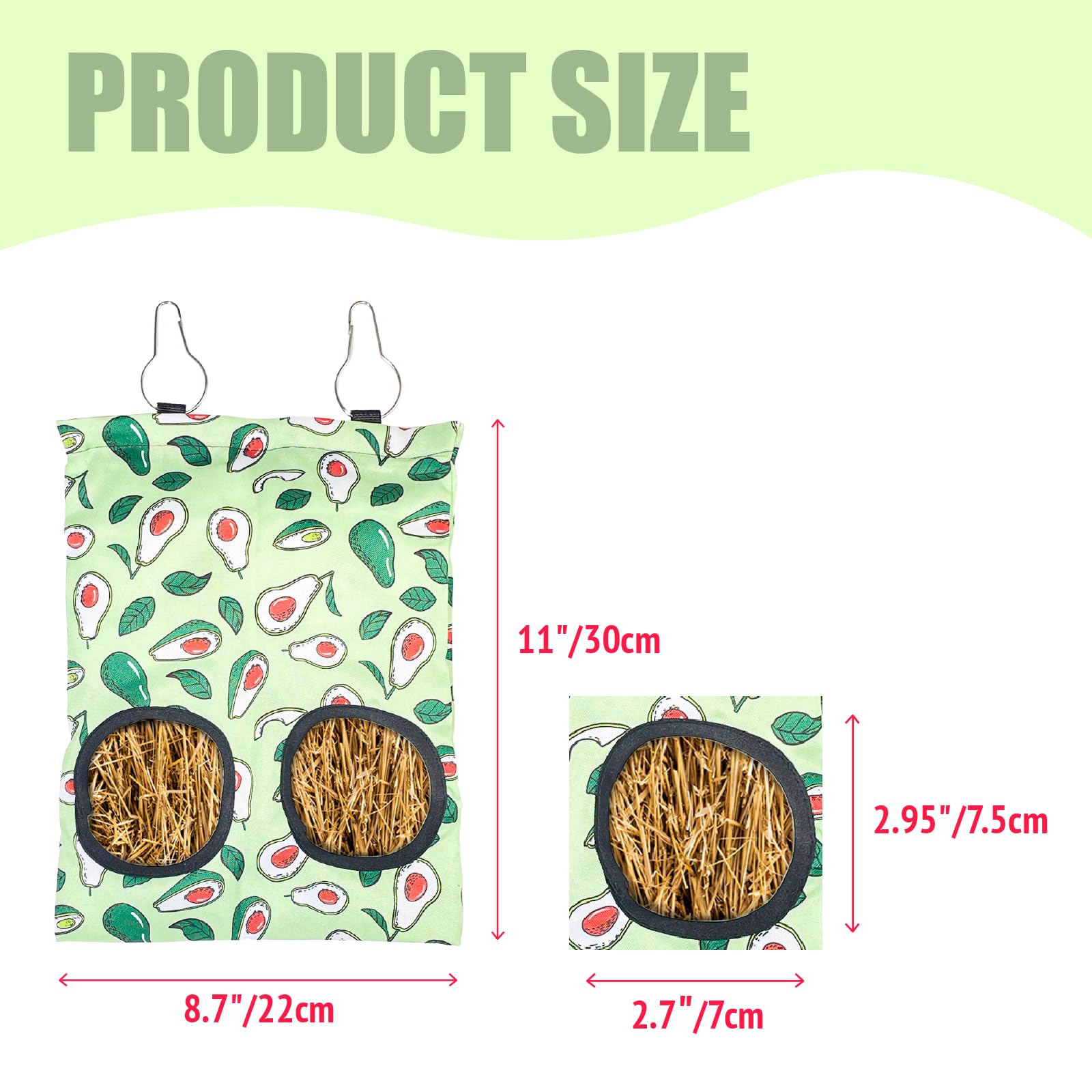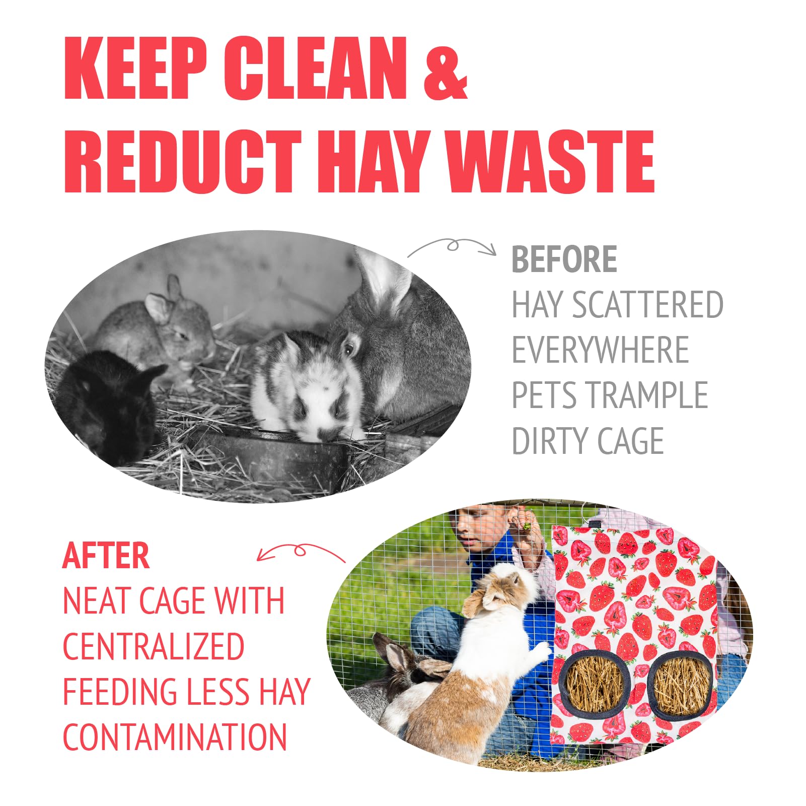 Save Space & Keep Tidy: Our guinea pig feeding bag features two holes, allowing two pets to eat simultaneously. Two metal hooks allow you to easily hang the hay bag in the cage or elsewhere, effectively separating the hay from the bowls.This design helps maintain a tidy pet environment while effectively reducing hay waste