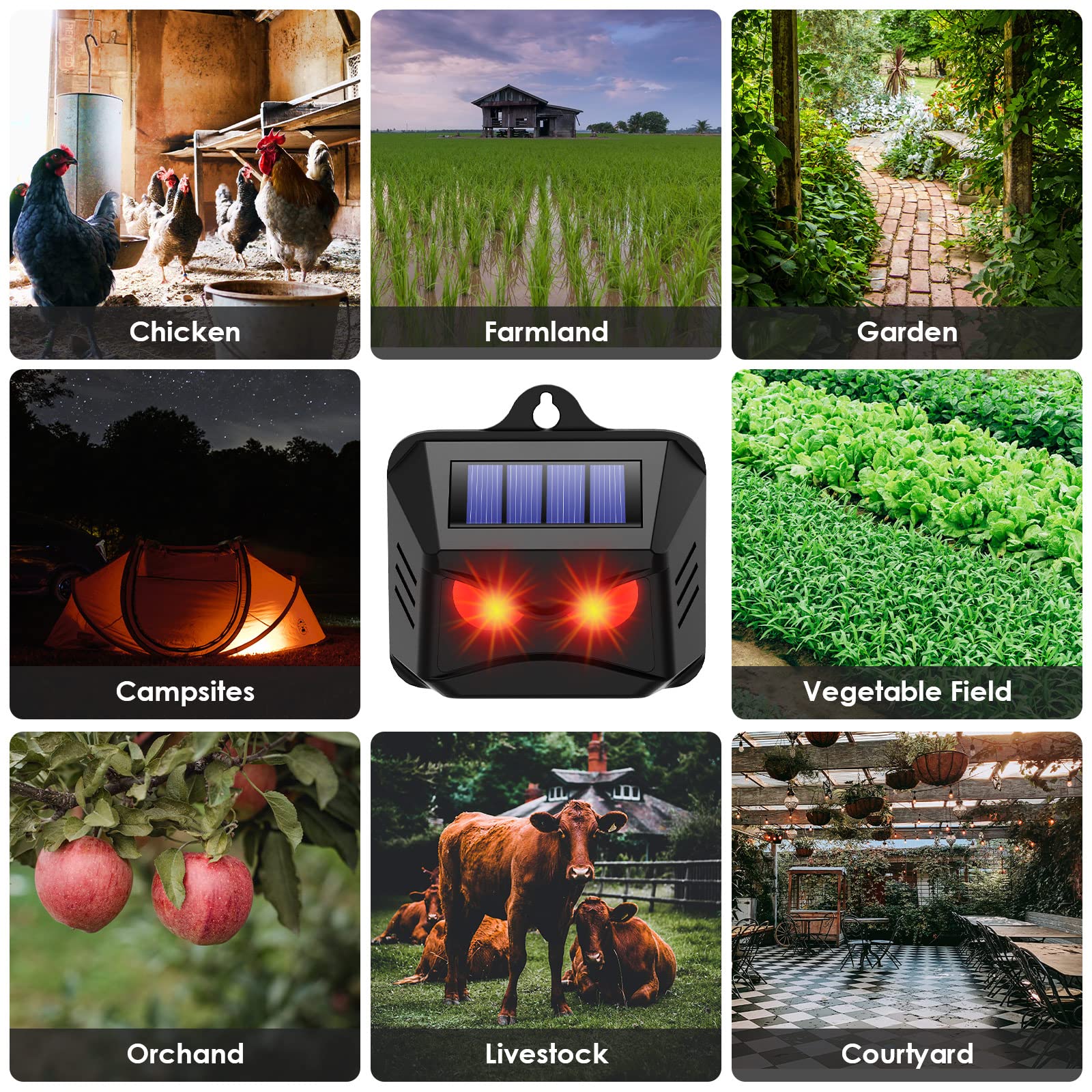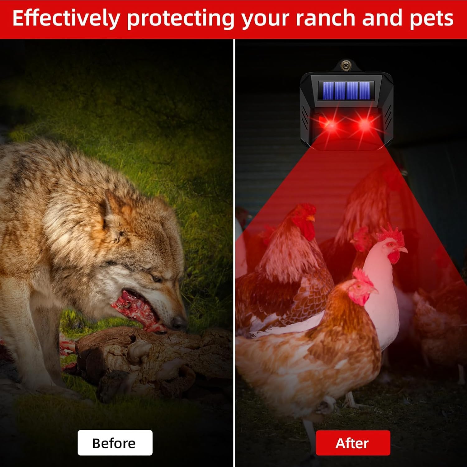 Effective Nighttime Protection: Keep unwanted animals away with this solar noctural repeller. Designed to work at night, the dual red LED lights mimic the eyes of a predator to deter nocturnal predators and protect your garden yard farm chicken coop and livestock