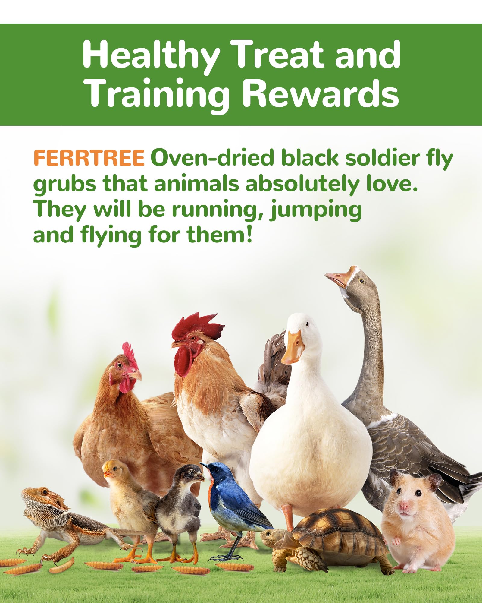 FERRTREE Dried Black Soldier Fly Larvae offer a 100% natural and nutritious snack for your poultry. These non-GMO worms larvae enhance the nutritional quality of diets for chickens, ducks, birds and reptiles, making them a valuable source of essential minerals and vitamins.