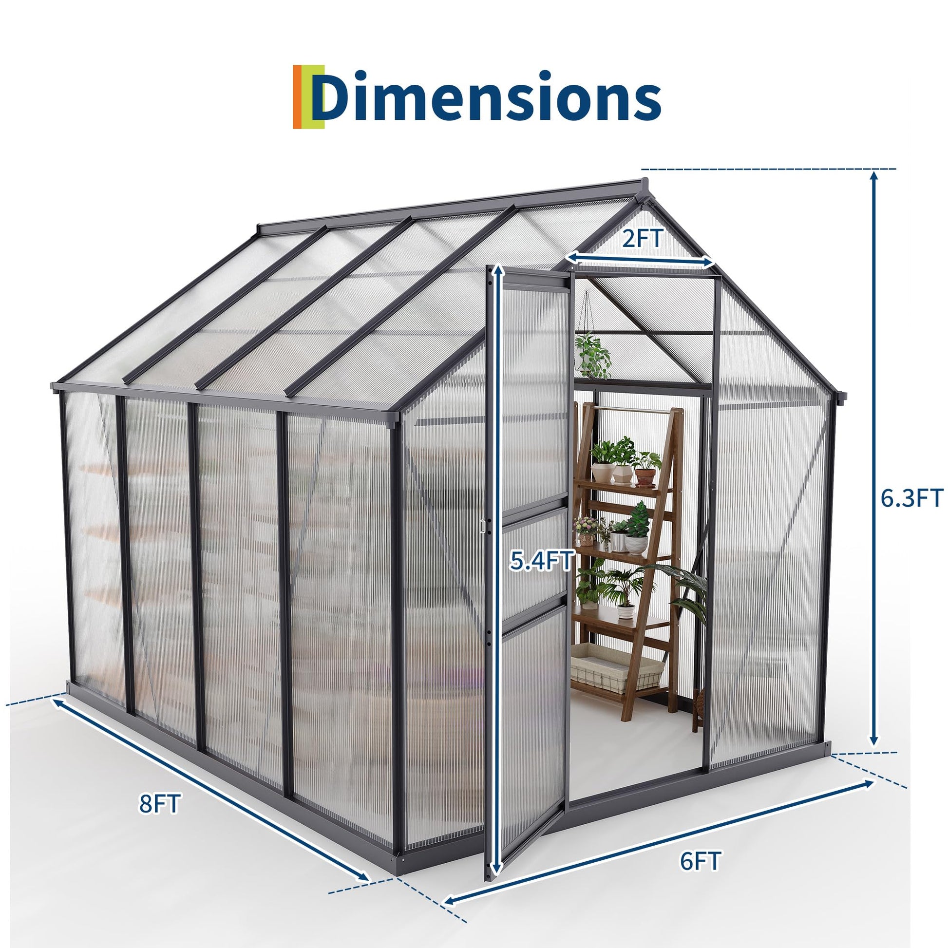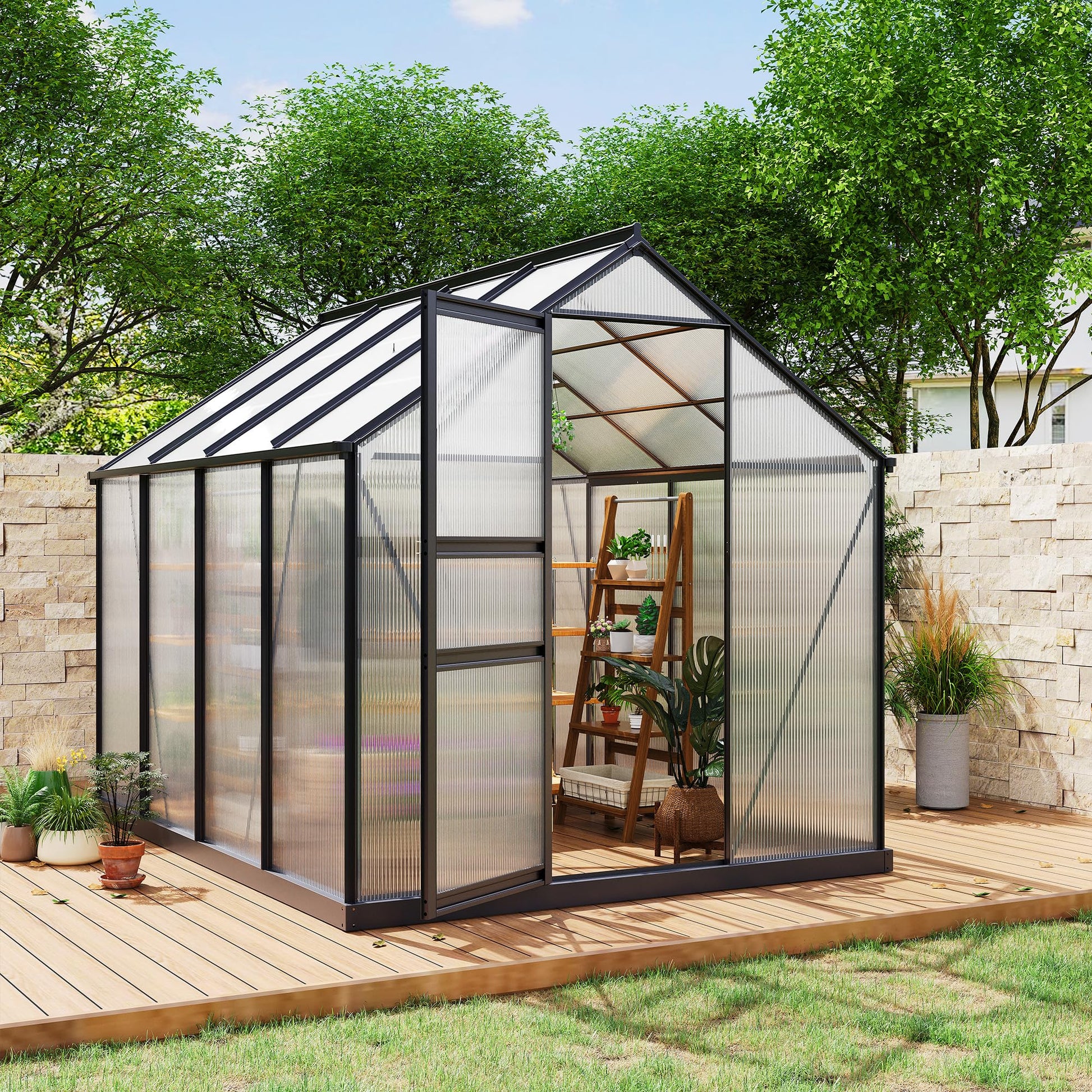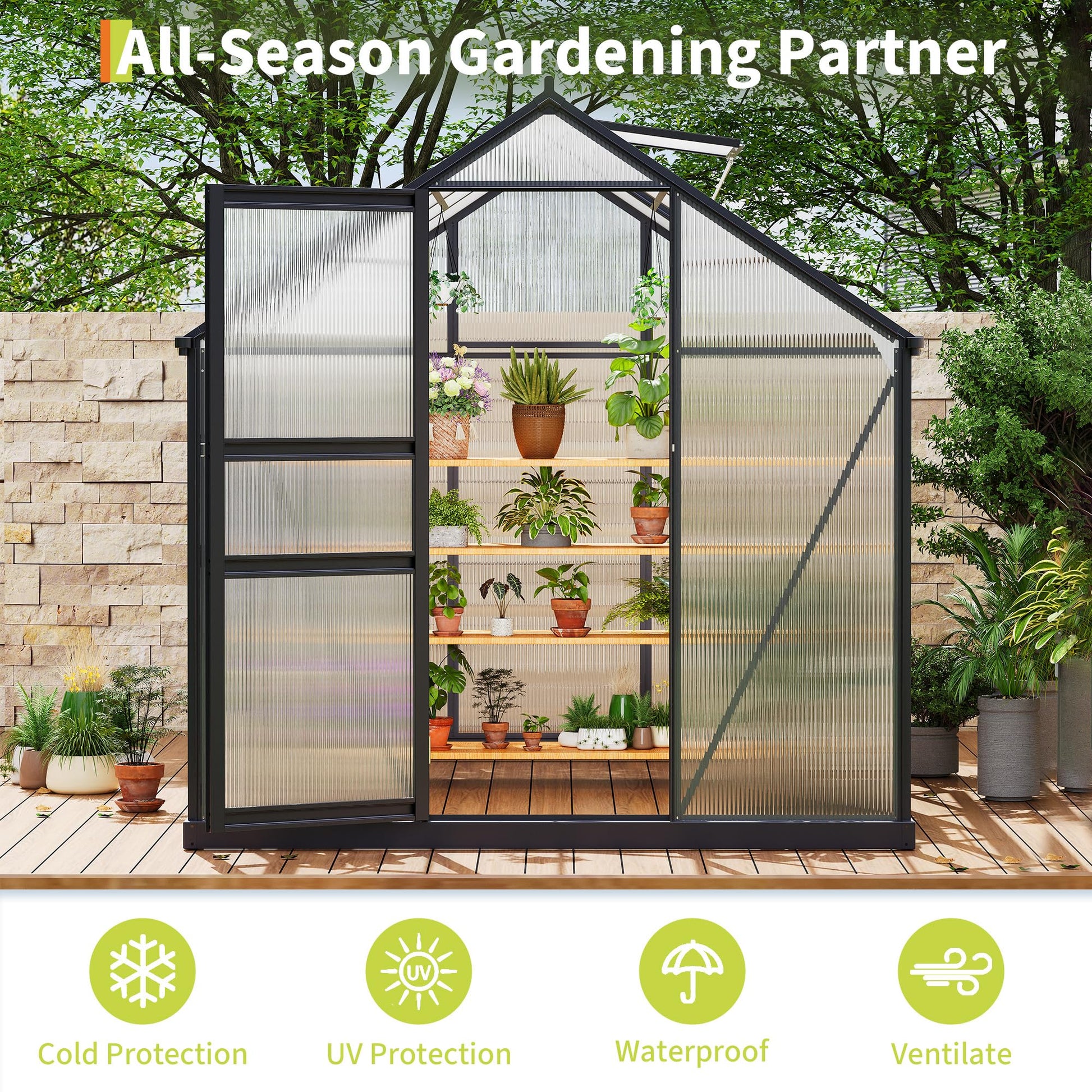 6*8 FT Outdoor Walk-in Greenhouse, Polycarbonate Green House, Heavy Duty Greenhouse with Vented Roof Window, Windproof Aluminum Frame, Suitable for Outside Gardening, Backyard, Patio