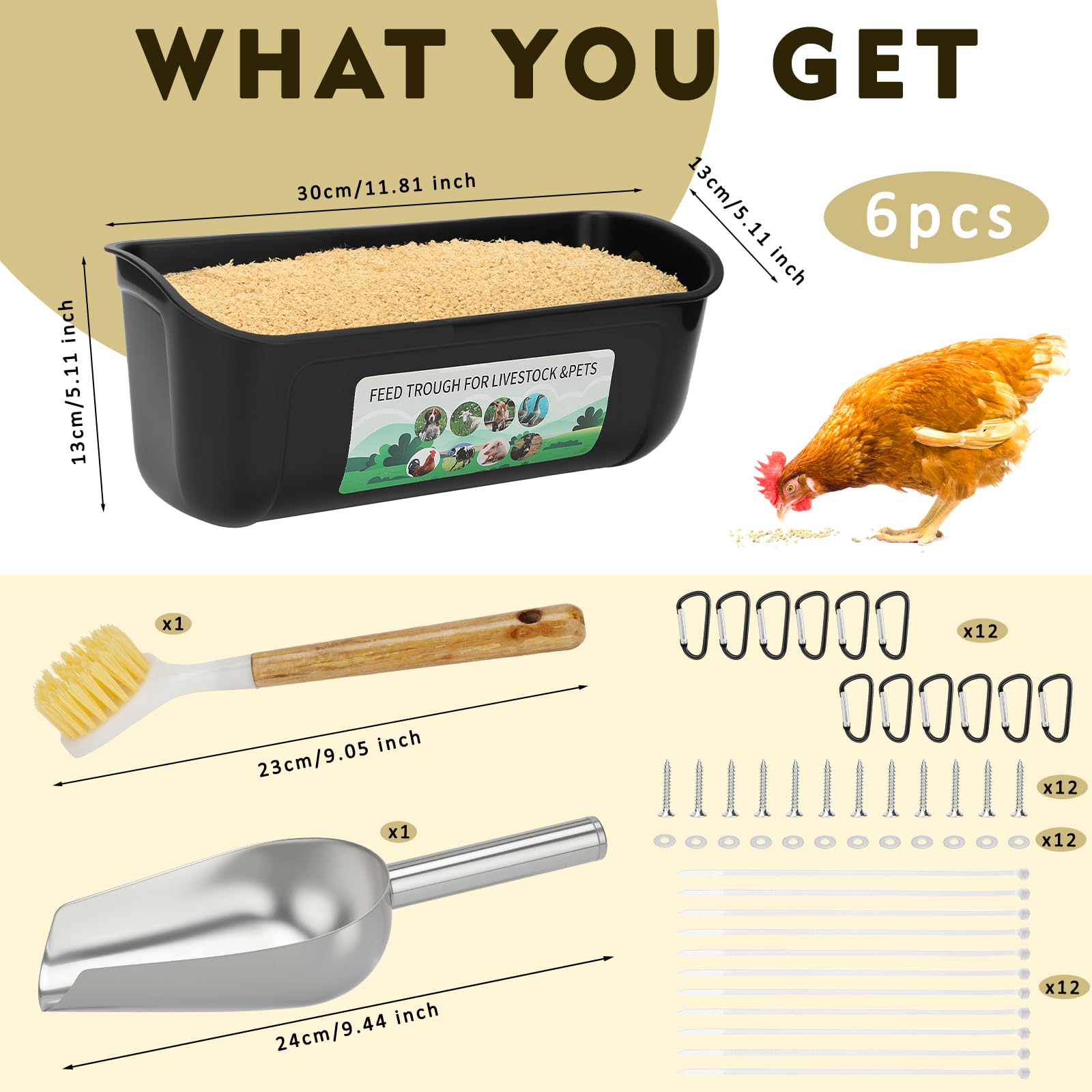 Package Includes: You will receive 6 pieces of black hanging feeders, 1 piece of feed scoop, and 1 piece of brush; each set of feeders comes with 2 carabiners, 2 screws + washers, and 2 zip ties, with ample quantity to meet your needs.