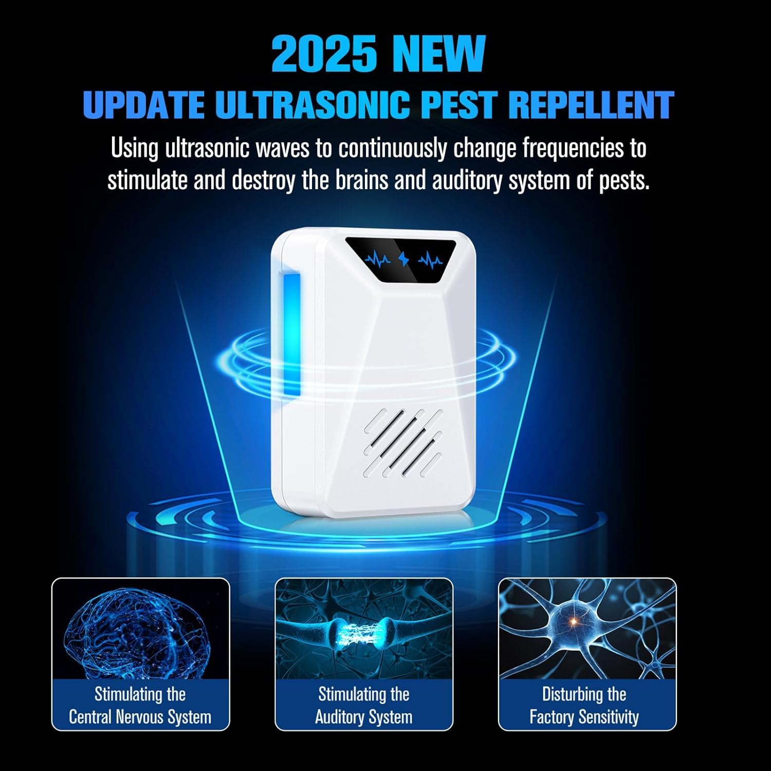 Upgraded ultrasonic pest control repeller: This plug-in mouse and pest repellent emits ultrasonic waves that stimulate the auditory systems and nervous structures of fleas, rodents, roaches, mice, insects, mosquitoes, ants, rats, bed bugs, and other common pests, prompting them to vacate the premises.