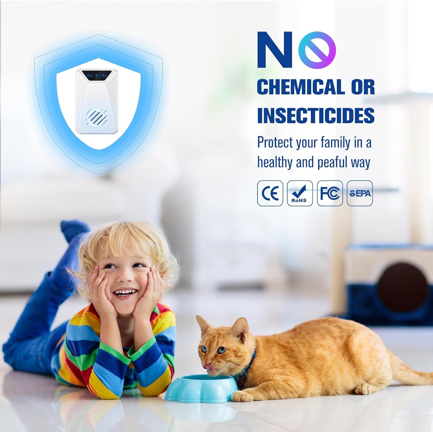 100% safe for children and pets: The device contains no toxic substances, odors, or chemical agents, making it entirely safe and non-harmful for children, pregnant women, and domestic animals. It offers a healthy and peaceful means of pest control for your household.