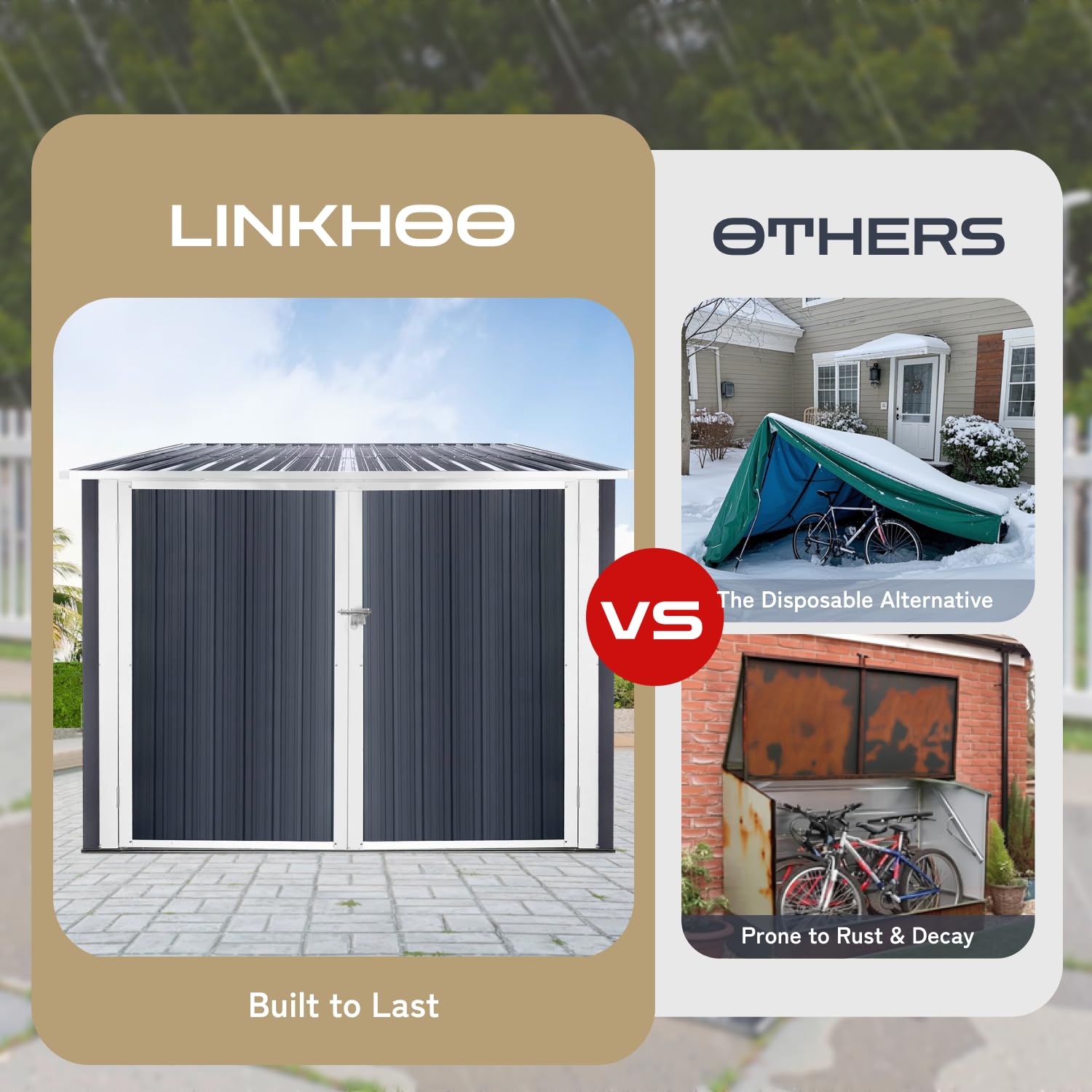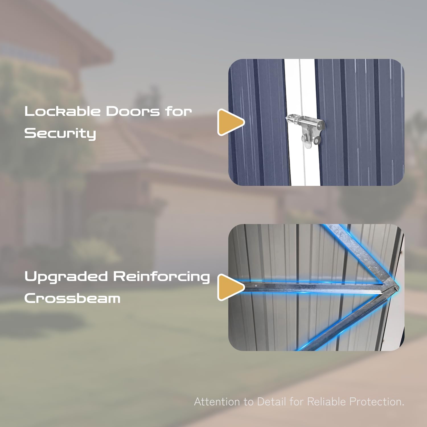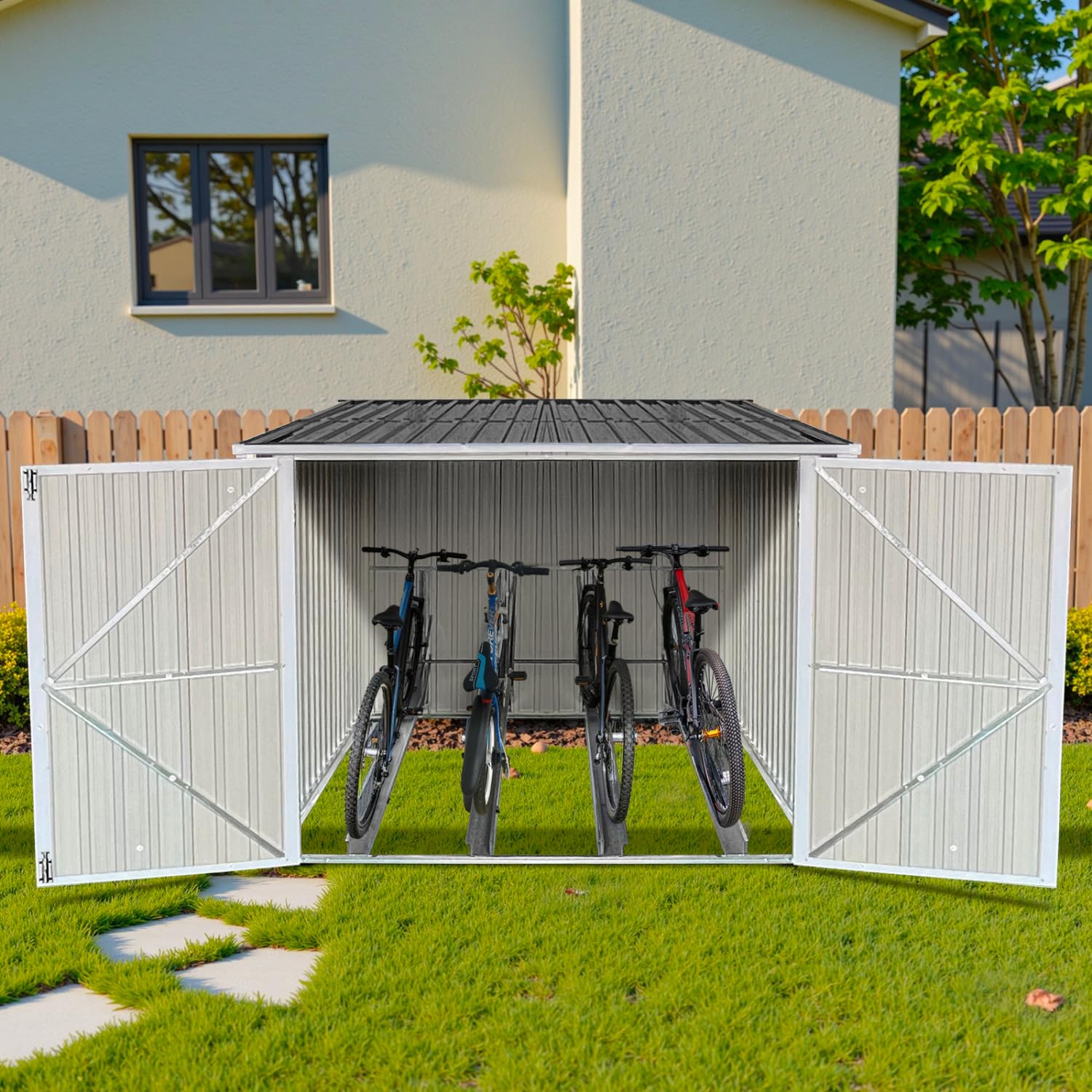 [Fortified Security] Featuring lockable double doors, you can choose your preferred security lock for 24/7 bike protection, keeping your valuable assets safe and sound within this secure bicycle storage shed