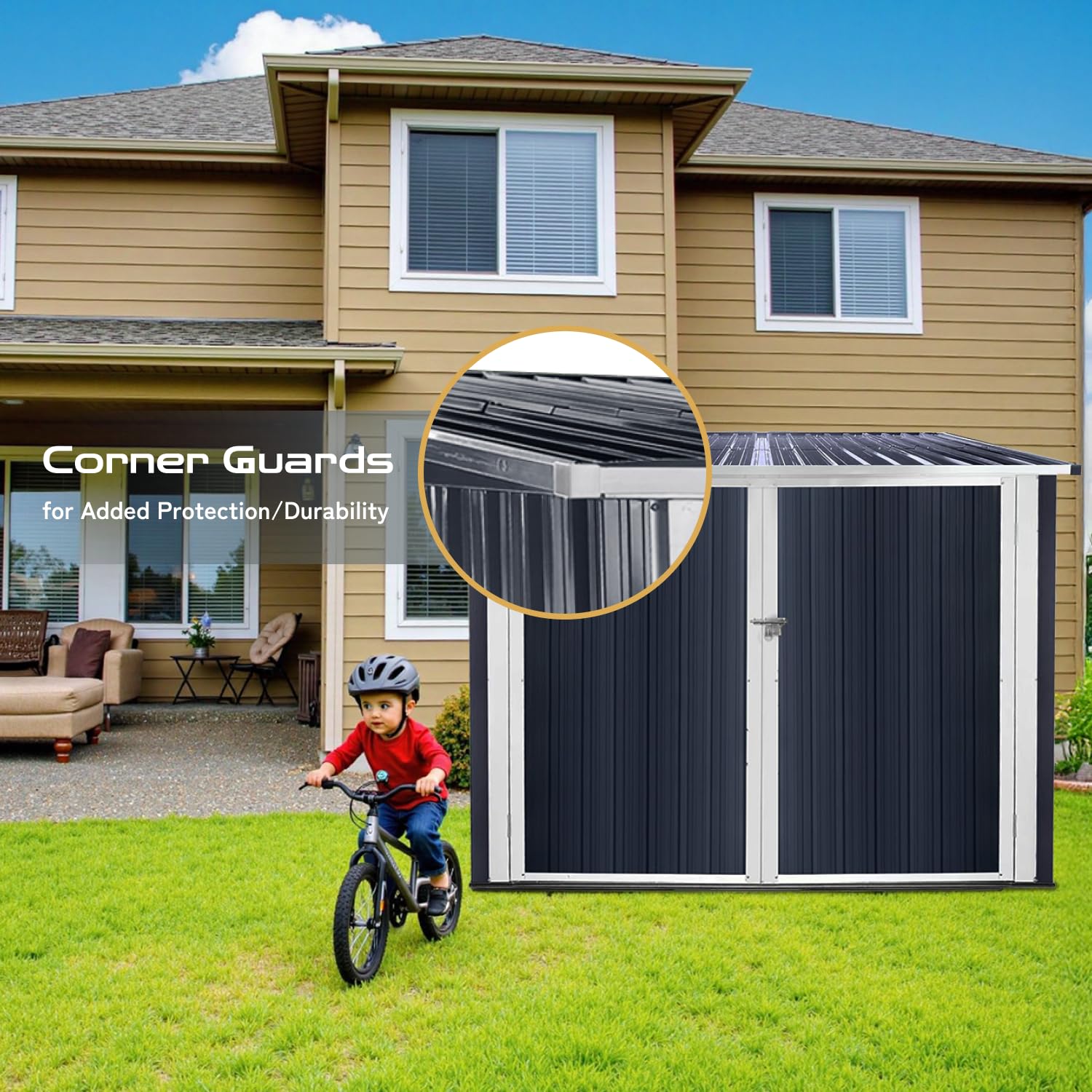 6’ x 6’ Bike Storage Shed, Bicycle Metal Shelter & Garage w/ 4 Rails and Lockable Door, Heavy Duty Bicycle Storage Shed for All Weather, Anthracite with White Trim
