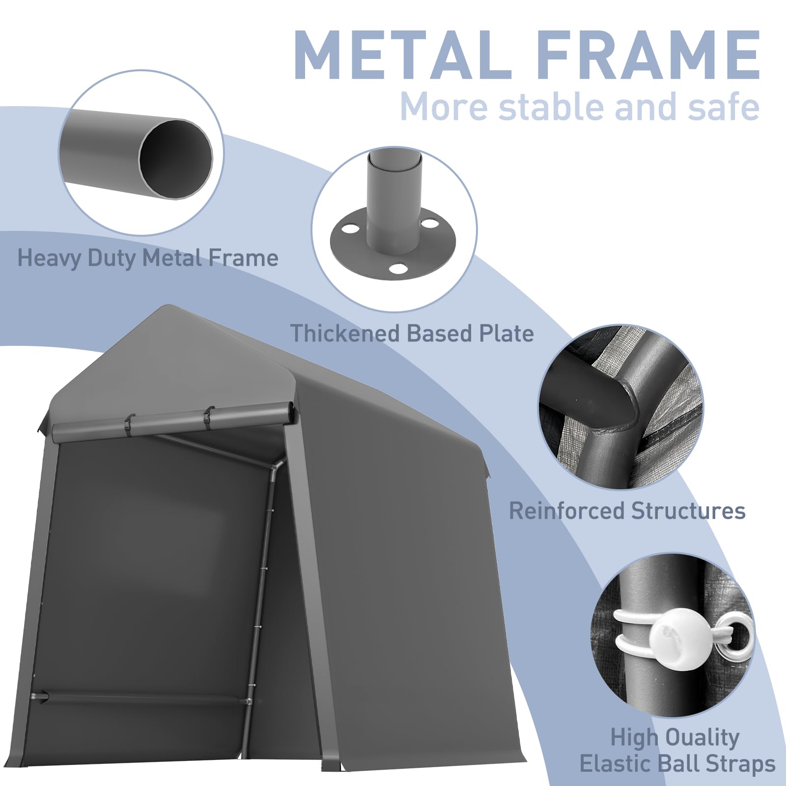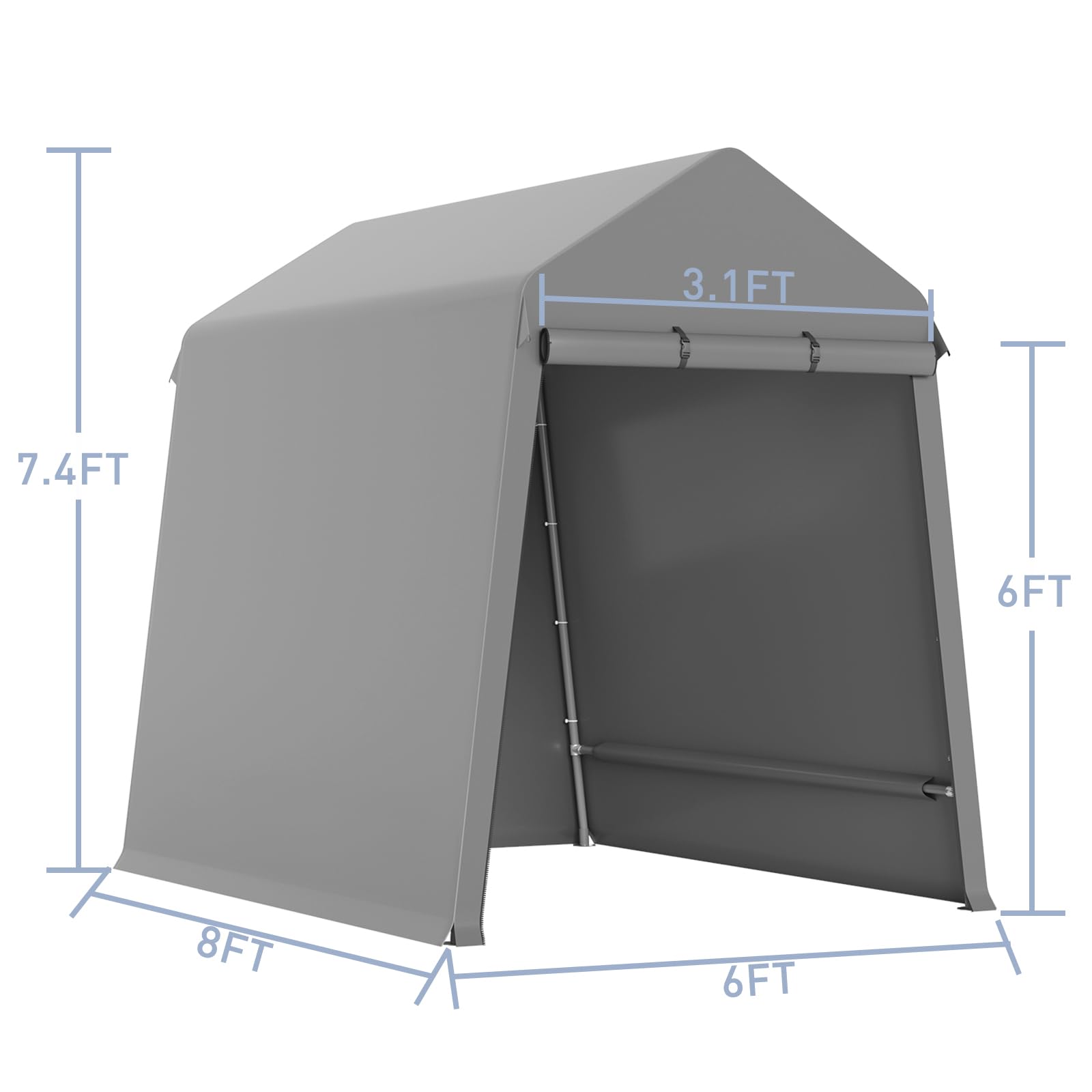 6X8 Ft Outdoor Portable Storage Shelter Shed with Rolled Up Zipper Doors & Vents, Heavy Duty Carport for Motorcycle Waterproof and Uv Resistant Anti-Snow Portable Garage Kit Tent, Gray