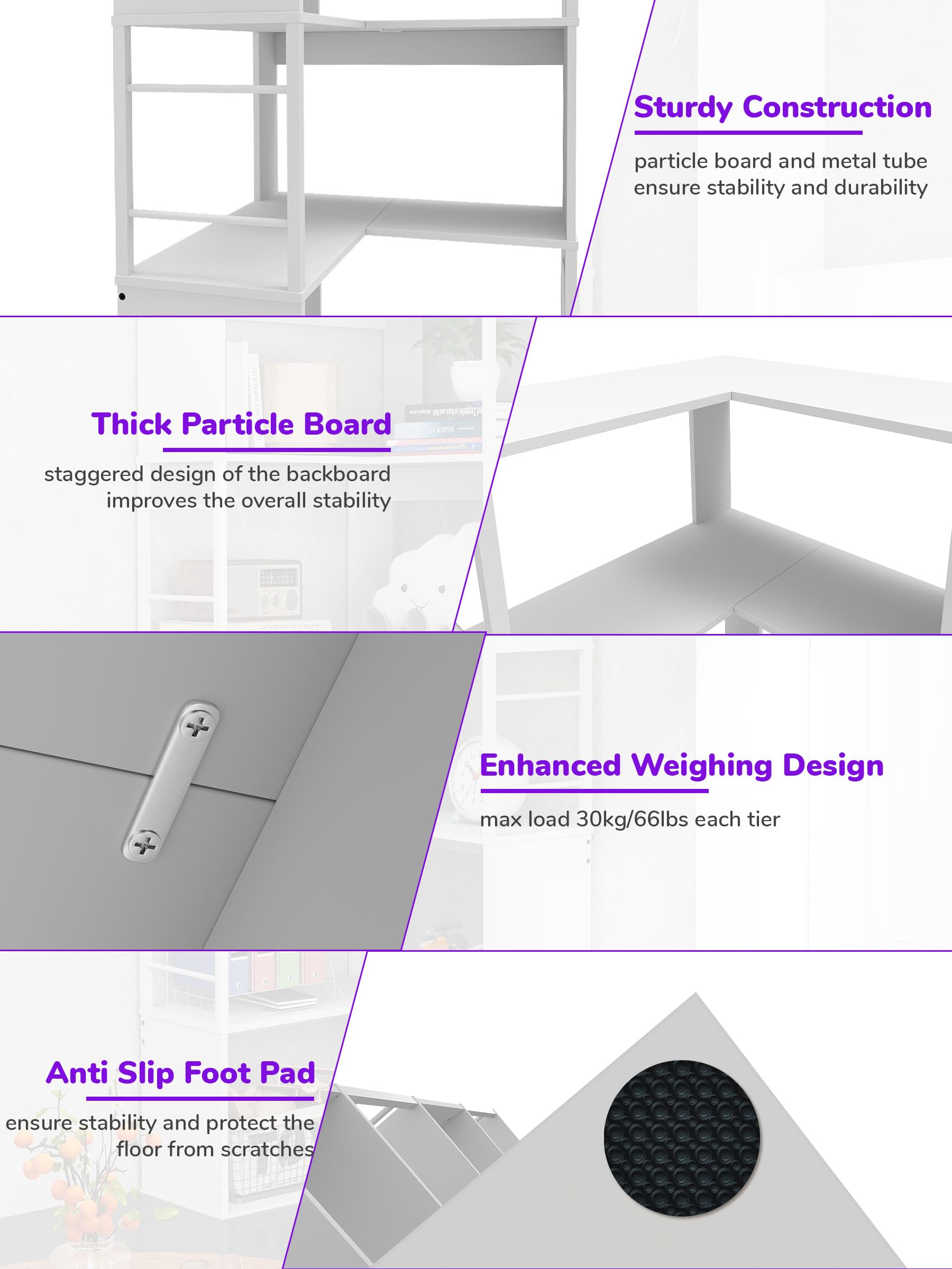 【Sturdy & Durable Construction】Built with high-quality iron + wood-grain finish, this corner bookcase supports 77 lbs per shelf. Includes anti-tip hardware for stability, ensuring long-lasting use.