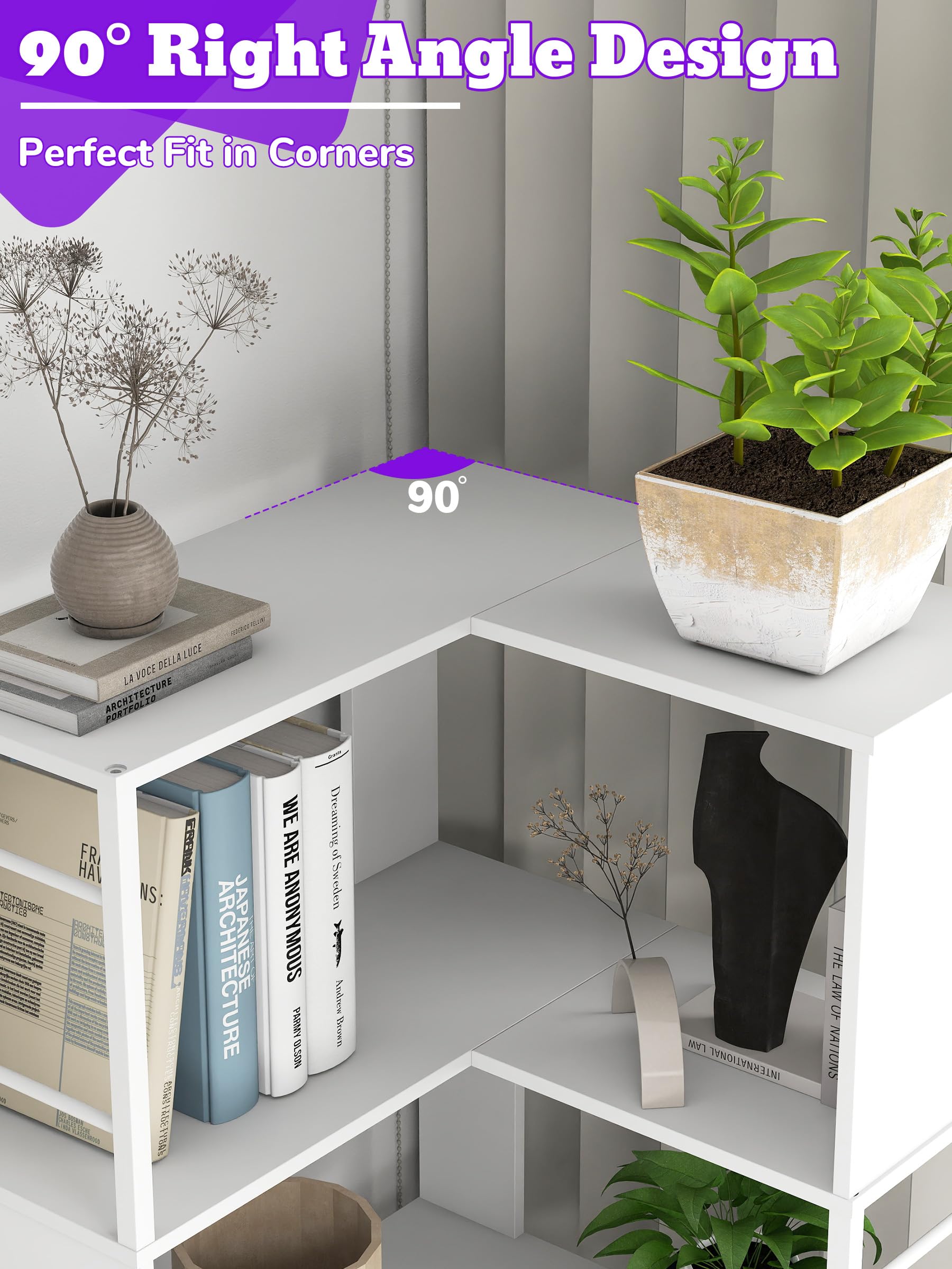 【Space-Saving L-Shaped Corner Bookshelf】Maximize unused corners with this L-shaped bookshelf, designed to fit snugly in tight spaces. The corner shelf design optimizes room layout while providing ample storage for books, decor, and more.