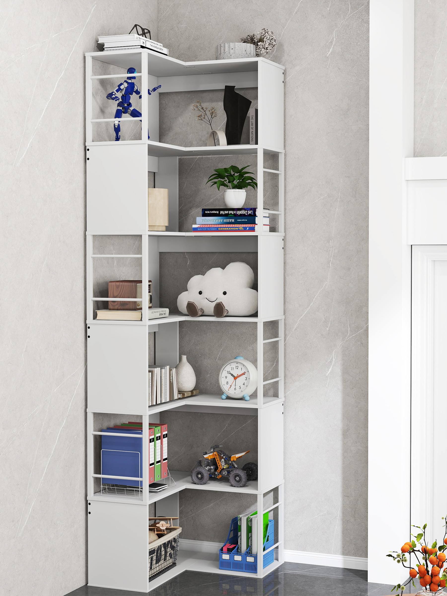 【Spacious 7-Tier Corner Bookcase】With 7 tiers (11.82" height each), this 7-tier corner bookshelf offers generous storage (74"x21.6"x21.6"). Perfect for organizing books, plants, toys, and essentials in living rooms, offices, or bedrooms.