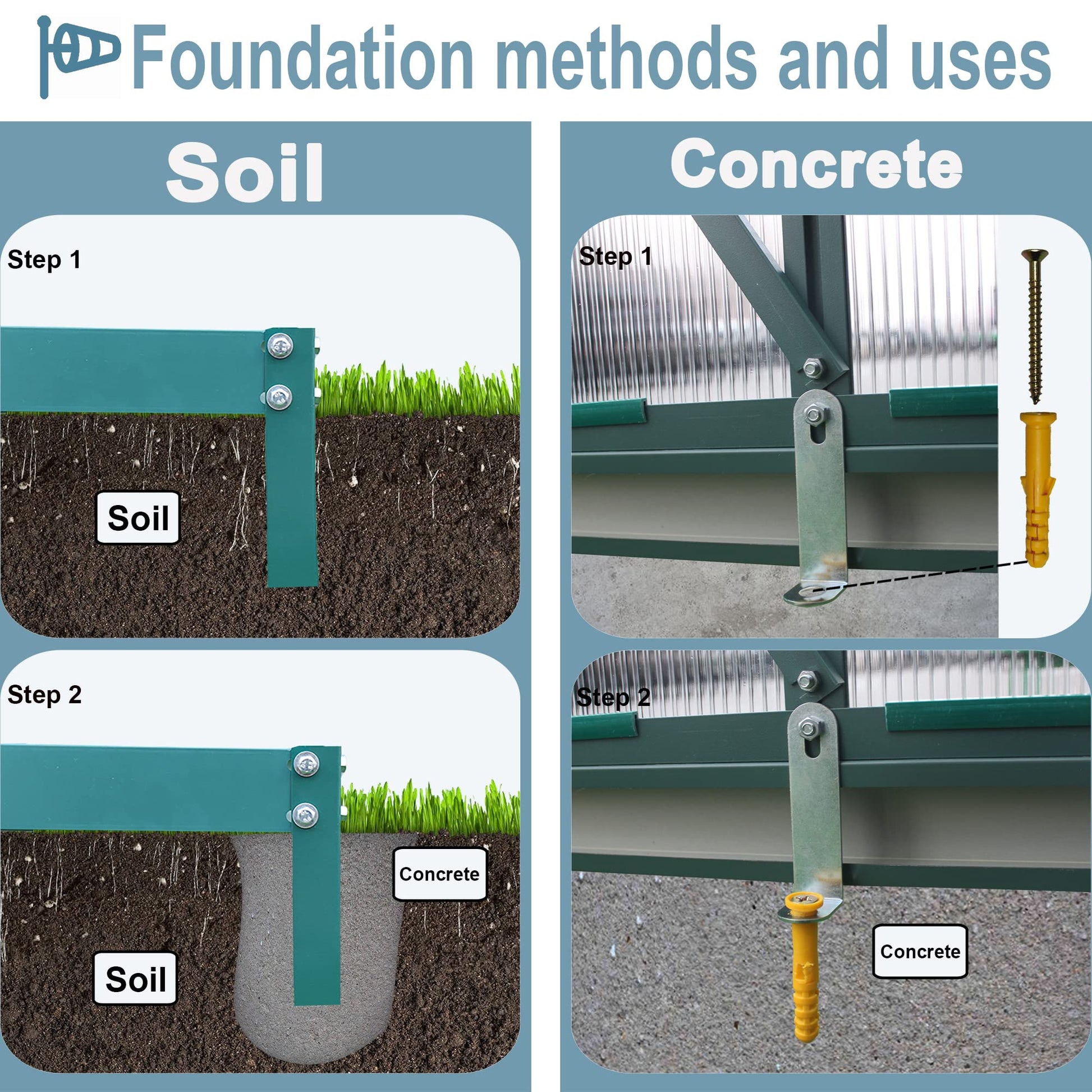 【HEAVY-DUTY Aluminum FRAME】 - The heavy-duty greenhouse kit is made of thickened aluminum which is rust-resistant and more sturdy to deal with all kinds of weather.The installation method of the panel is to insert the aluminum alloy U-shaped groove, and completely wrap it to make it more stable.