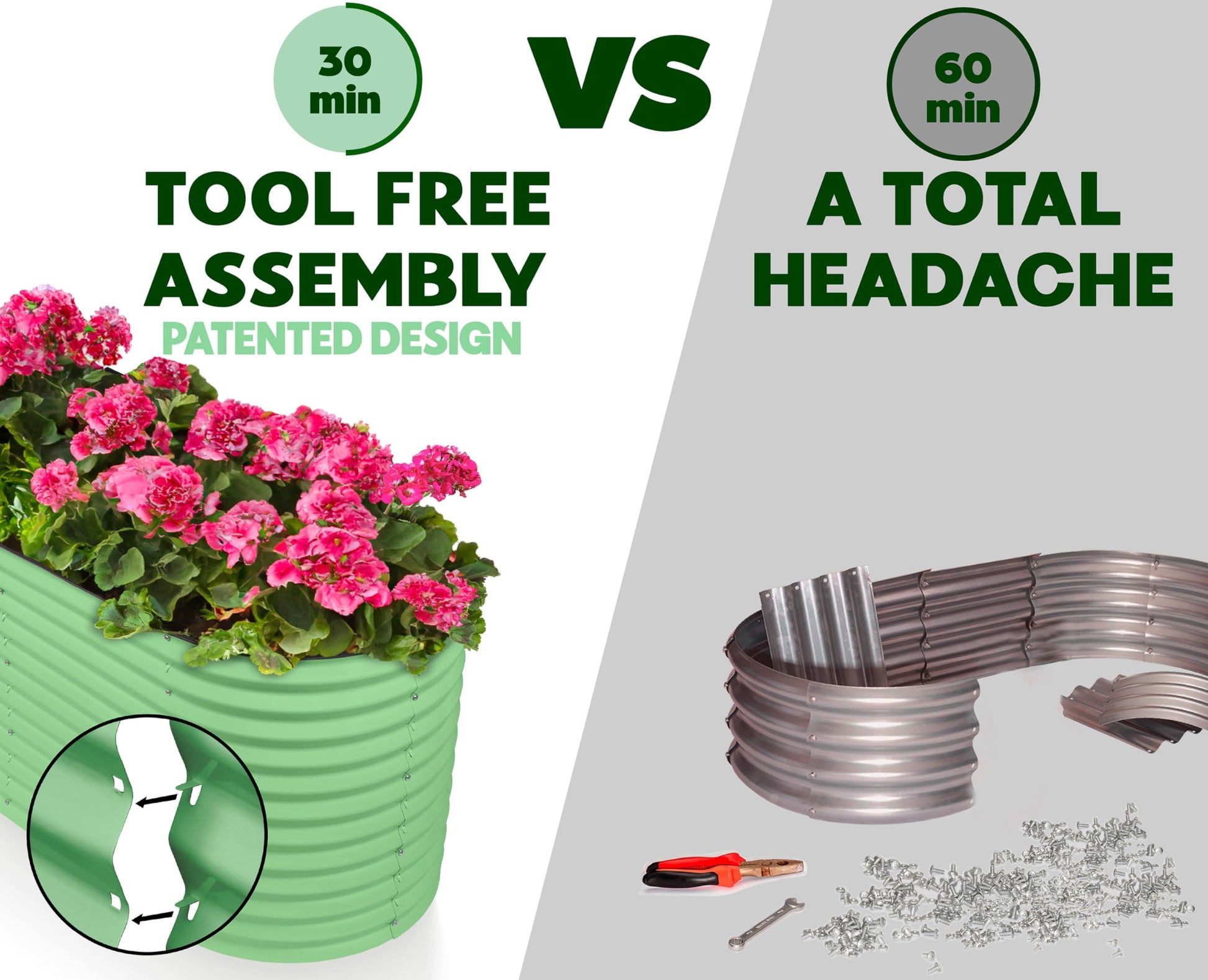 EFFORTLESS ASSEMBLY, LIKE NO OTHER! Begin your planting journey by choosing our innovative patented design, featuring the perfect combination of easy assembly and durability. Thanks to our unique tool-free design, assembly is a breeze and can be completed in just 30 minutes! Get started on your garden right away and enjoy fresh, healthy produce in no time.