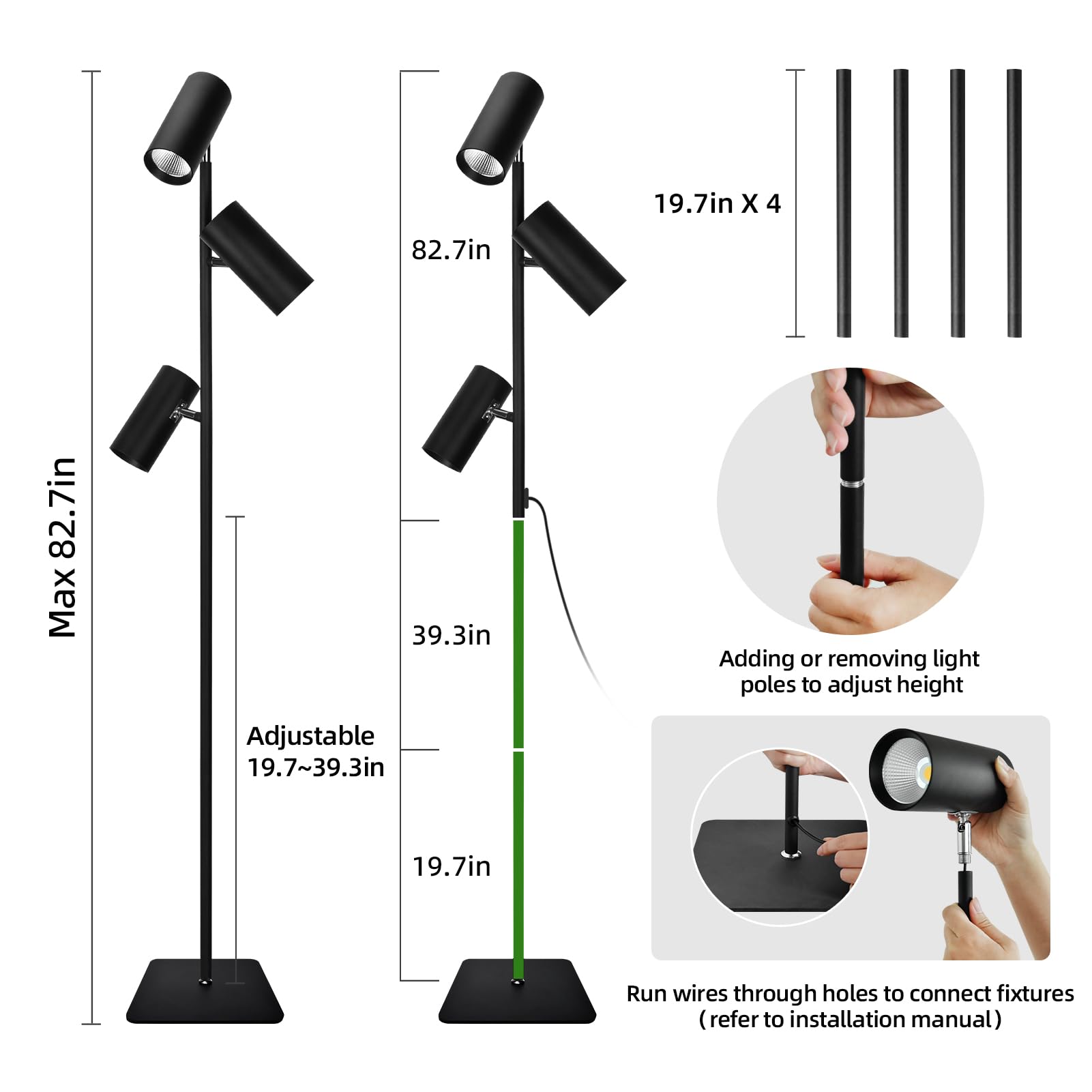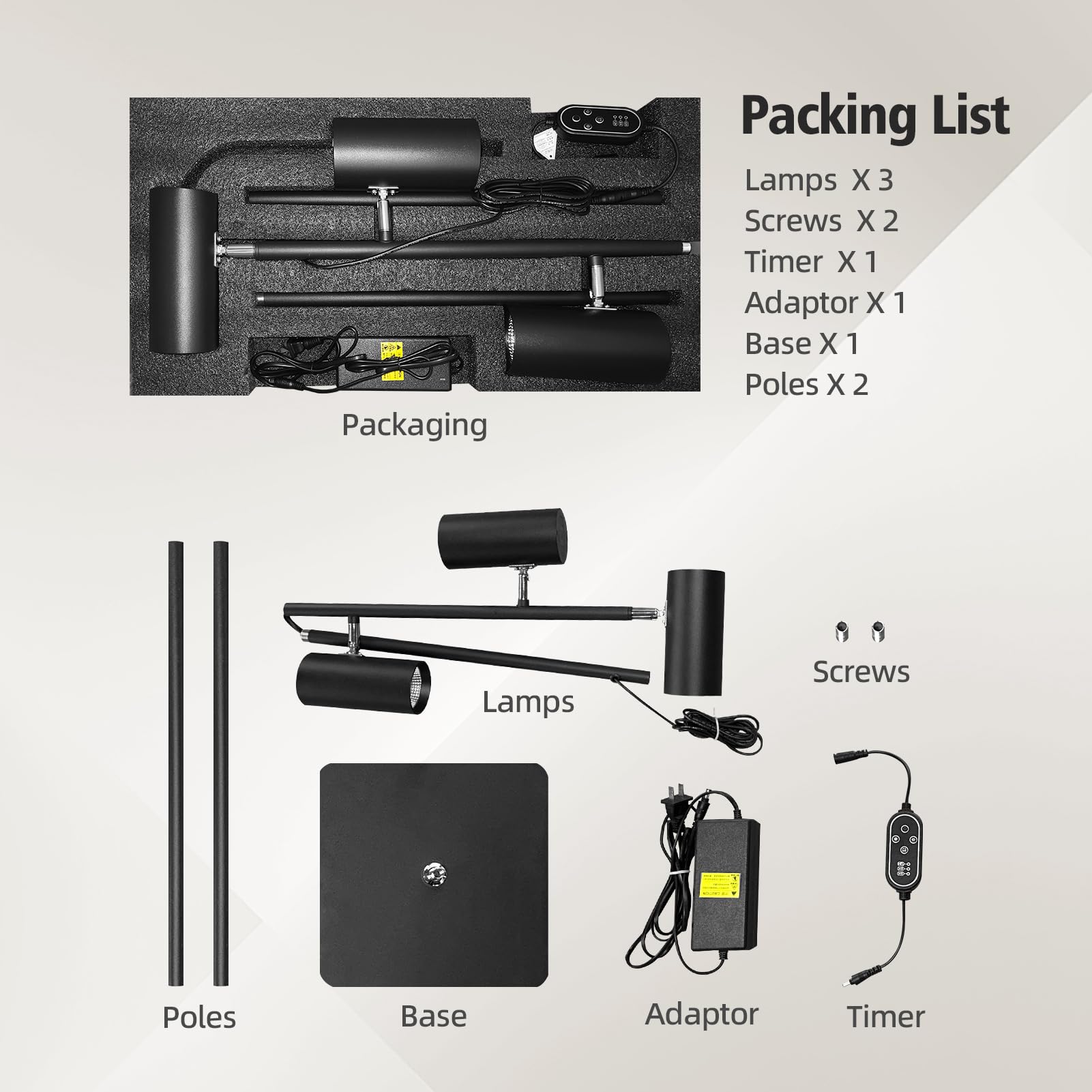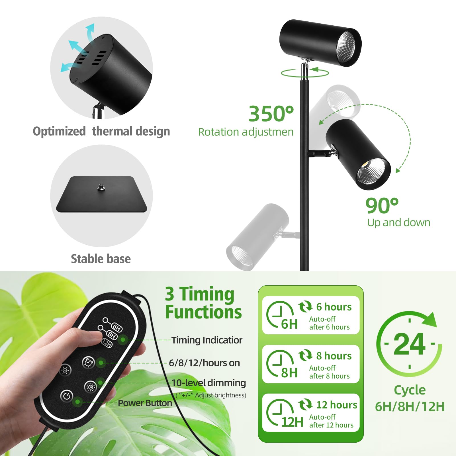 đ ăTriple Head & AdjustableăCustomize the height from 43" to 83" with modular extension poles. The 360° rotatable heads direct light exactly where itâs needed, while the slim, stable base fits neatly into small apartments or office corners. Features 10-level adjustable brightness to suit different plants and growth stages, Covers an effective area of 80.73 sq. ft.