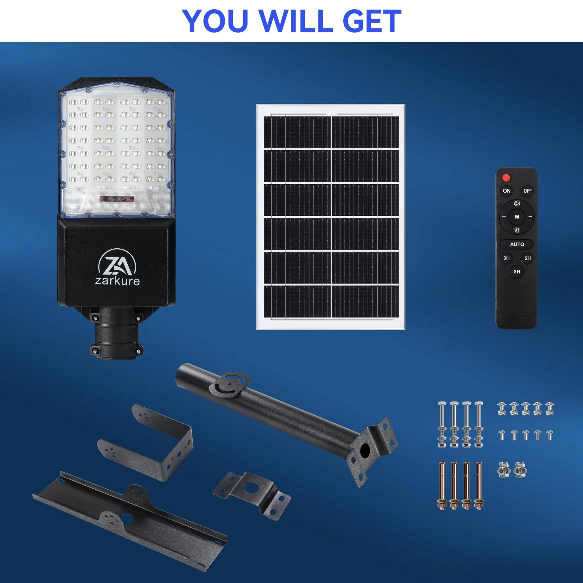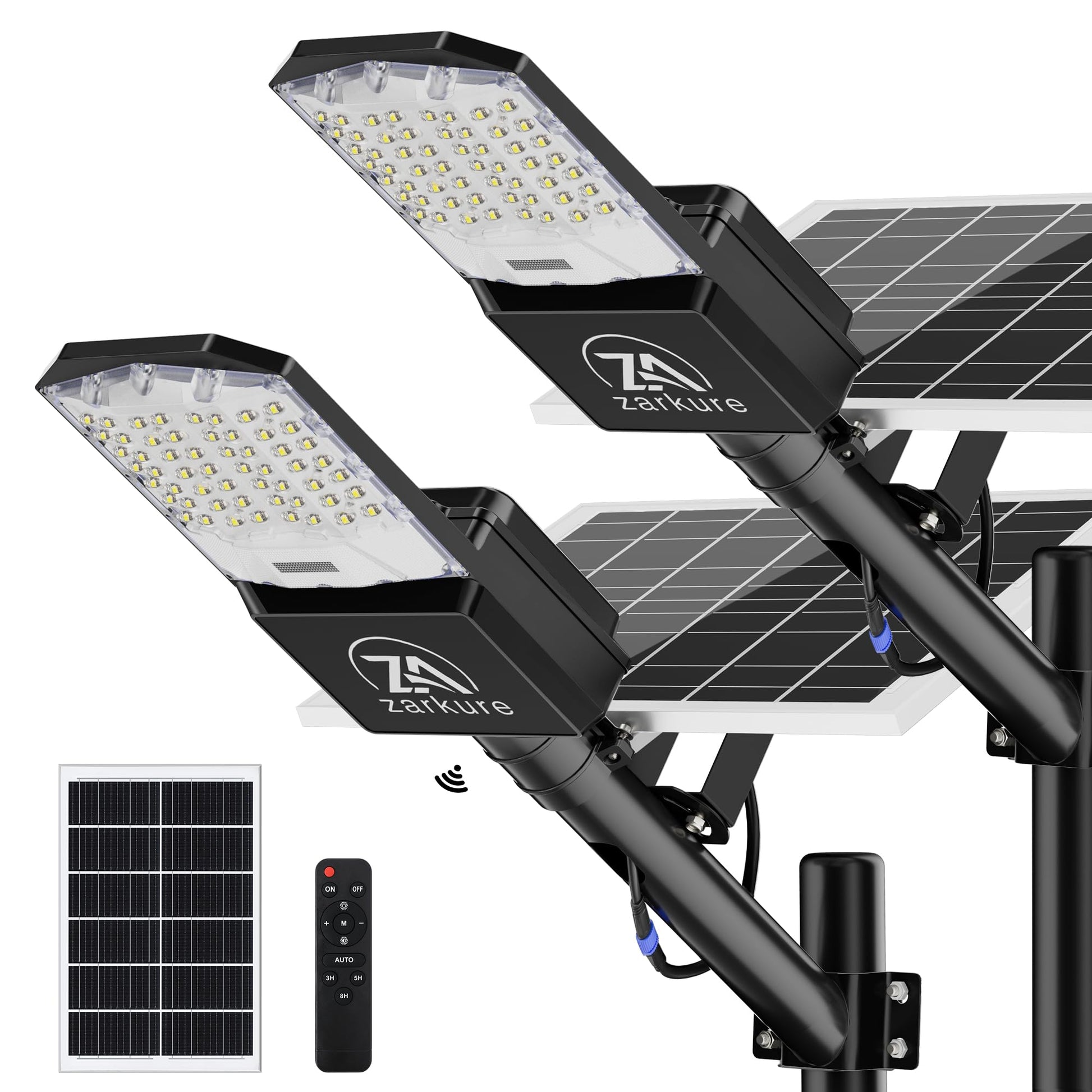 SOLAR MOTION LIGHTS OUTDOOR: The LED solar street light is equipped with a remote control, which is convenient for long-distance use. You can choose different lighting modes (motion sensor mode, timed lighting mode, and always lighting mode) and light brightness according to your needs. 10%-100% brightness level is adjustable. 3 timing models are available: 3/5/8H