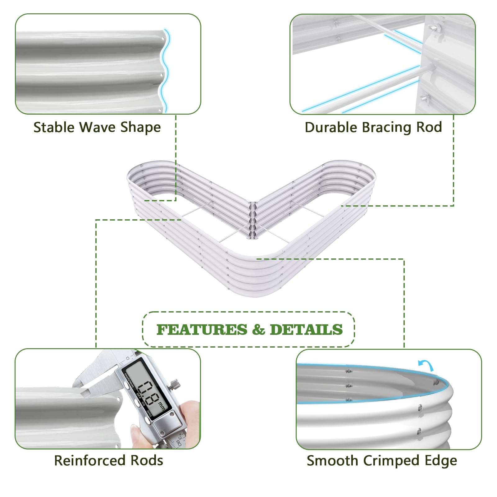 π Longer Lifespan: Made of 22-gauge 0.8mm thickness corrugated galvanized steel with multi-layer eco-friendly powder coatings. The heavy duty metal garden bed is strong enough to hold soil for decades.
